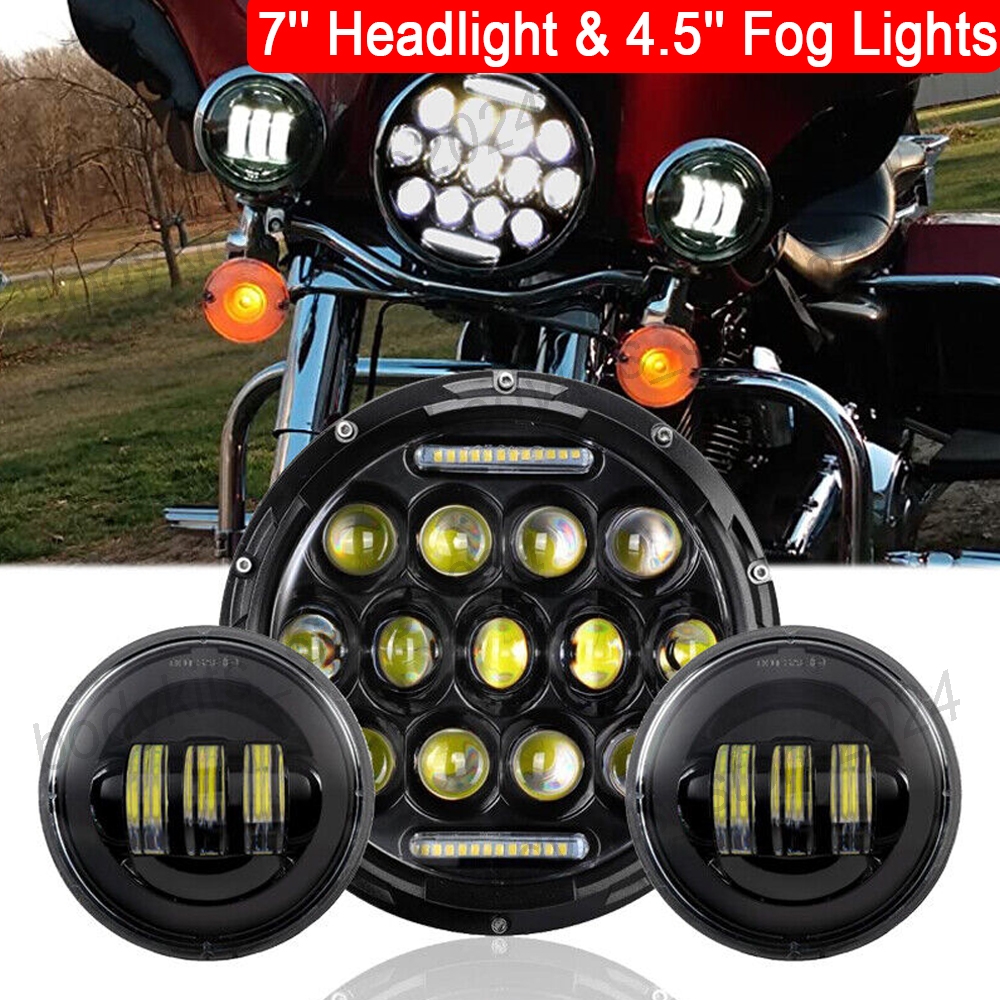 7" Motorcycle LED Projector Headlight with 2 x 4.5" Round LED Auxiliary Spot Fog Passing Light Lamp