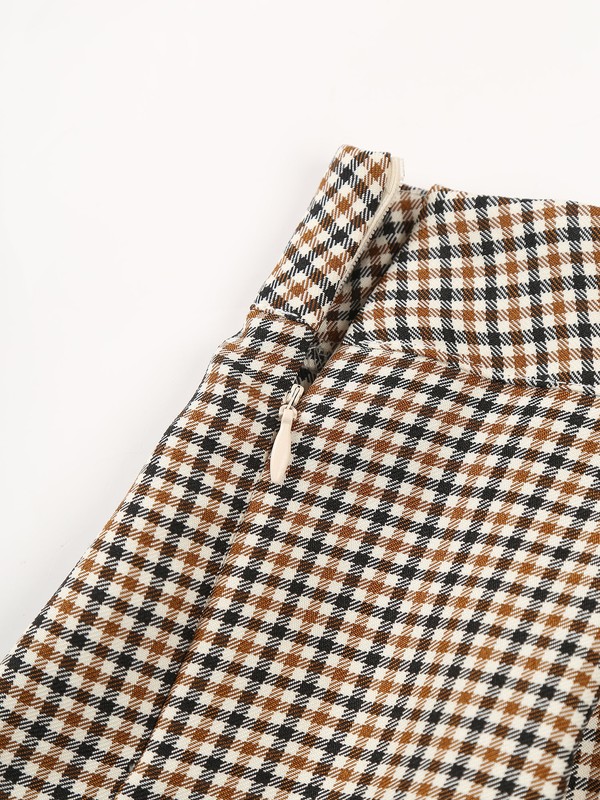 Design with plaid pattern, pleated design, zipper closure, easy to pull on and take off.