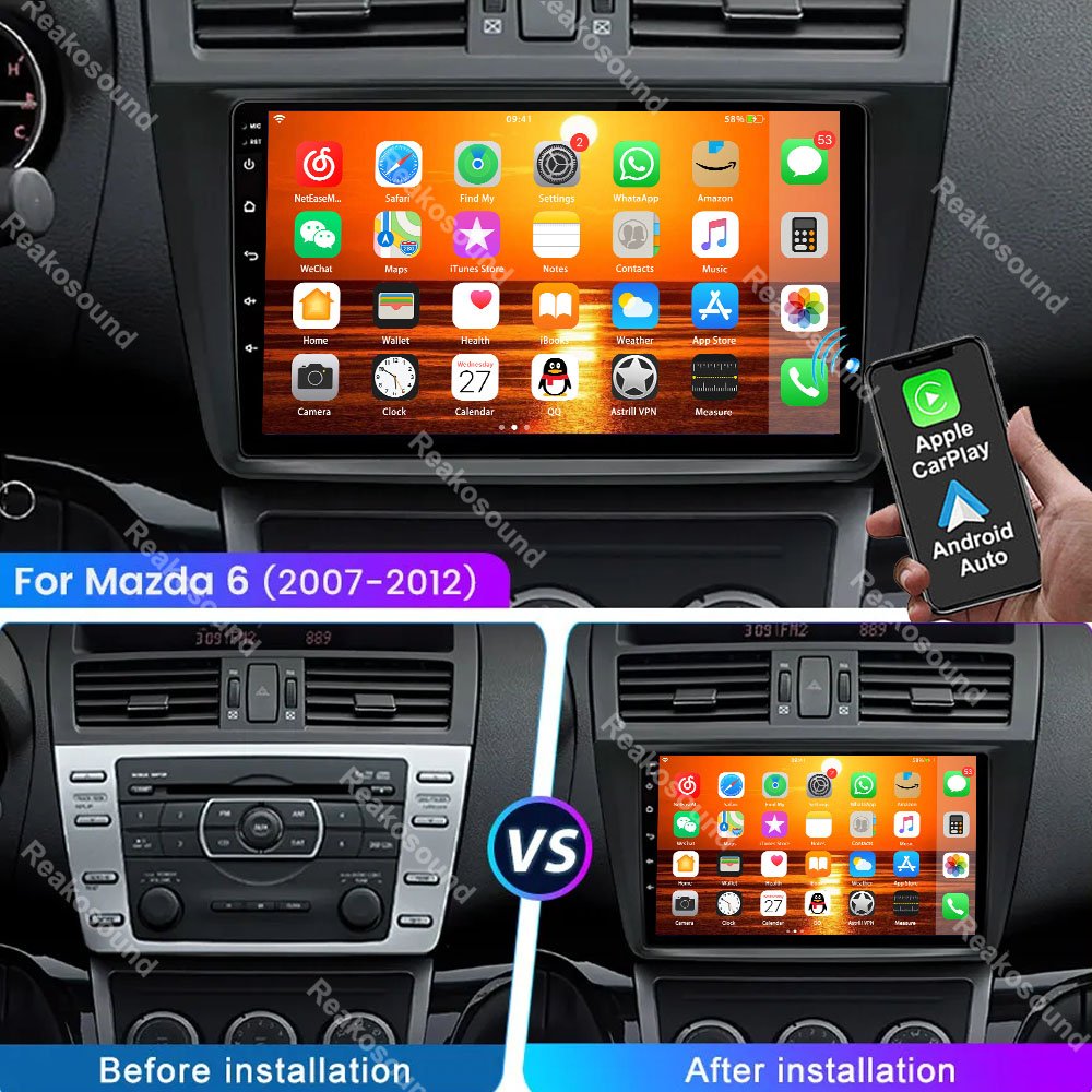 2+64G For Mazda 6 2007-2012 9" Android 13 Car Stereo Radio WIFI GPS Navi CarPlay