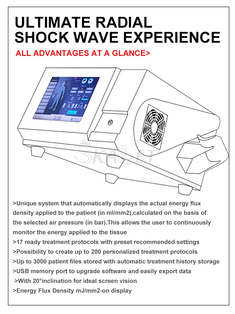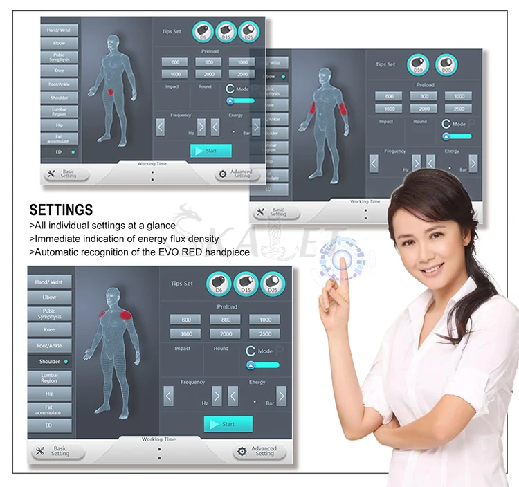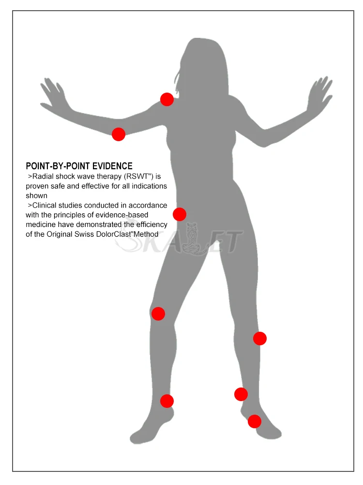 Shock Wave Fields of Application: ·Physiotherapy ·Orthopedics ·Sports injuries ·Aesthetic medicine