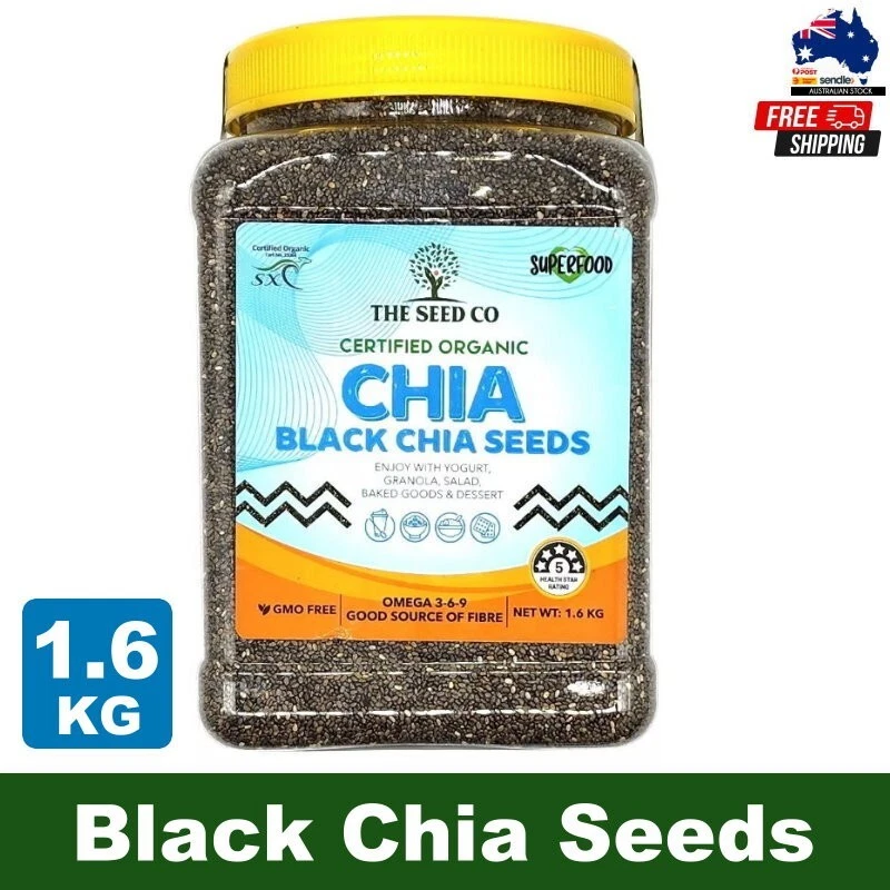1.6KG The Seed Co Chia Seeds Vegan Gluten Free Certified Organic Super food The Seed Co Certified Organic Chia Seeds are a premium superfood that is GMO-free, vegan, and gluten-free. Packed with nutritional benefits, these chia seeds are 100% natural and have a 5 health star rating. They are a versatile and nutritious addition to a healthy diet. Chia seeds are known for their high nutritional value, including being a good source of fiber, protein, omega-3 fatty acids, antioxidants, and various vitamins and minerals. They are also low in calories and carbohydrates, making them suitable for those following a vegan or gluten-free diet. These chia seeds are certified organic, ensuring that they are grown without the use of synthetic pesticides, herbicides, or genetically modified organisms (GMOs). This makes them a healthier and more environmentally friendly choice. With a 1.6KG pack size, these chia seeds provide a long-lasting supply of this superfood. You can incorporate them into your daily meals and snacks, such as smoothies, yogurt, oatmeal, salads, or baked goods, to boost their nutritional content and enjoy their unique texture.
