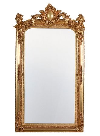 COME Riproduzione nostalgica Secondo il modello storico, il "Château" combina opulenza barocca con eleganza funzionale. Le foglie di Filigree, floreali di Akanthus e le figure d'angelo incoronate danno allo specchio una vivace dinamica e fissata agli accenti reali, come se un angelo di Versailles si fosse trasferito nella loro casa.