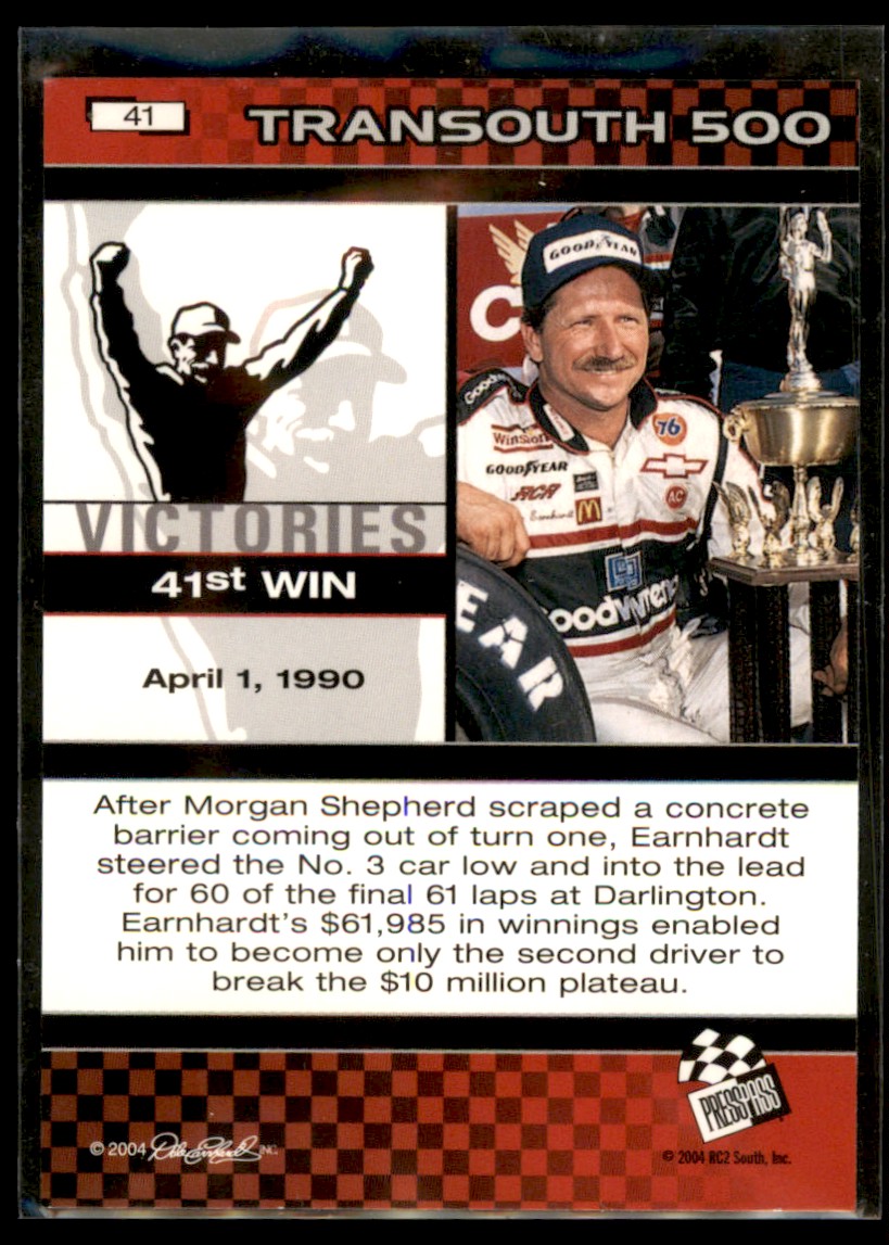 2004 Press Pass The Legacy Victories Dale Earnhardt Darlington 1990 #41