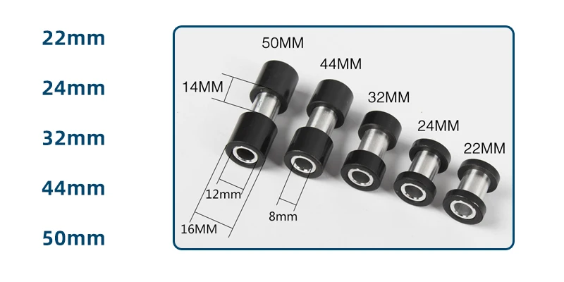 Each shock absorber is equipped with two 24mm bushings by default. If you need bushings of other lengths, please let us know. There are bushings of the following lengths, thank you.