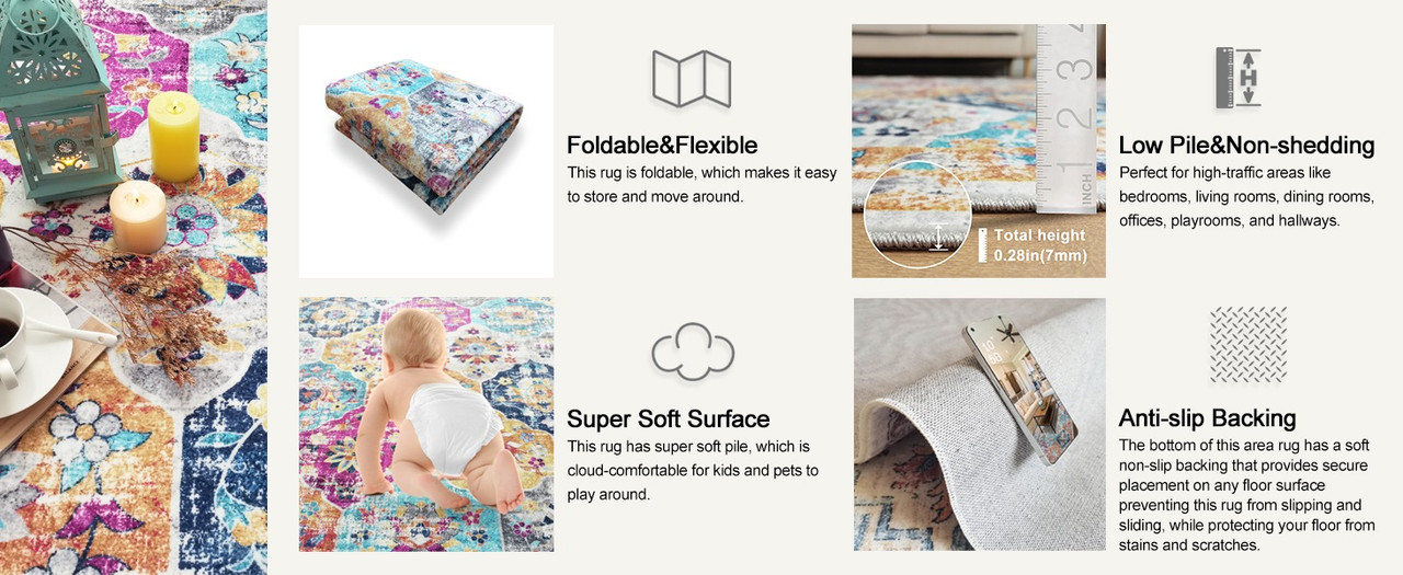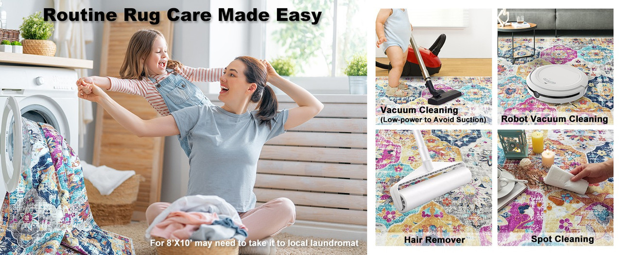 Say goodbye to expensive cleaning services. This rug is designed for easy upkeep—just toss it in the washing machine or vacuum regularly to keep it looking fresh. Spot cleaning with mild detergent tackles everyday spills, making it perfect for homes where life gets messy. No additional rug pad is needed, though it can be added for extra comfort.