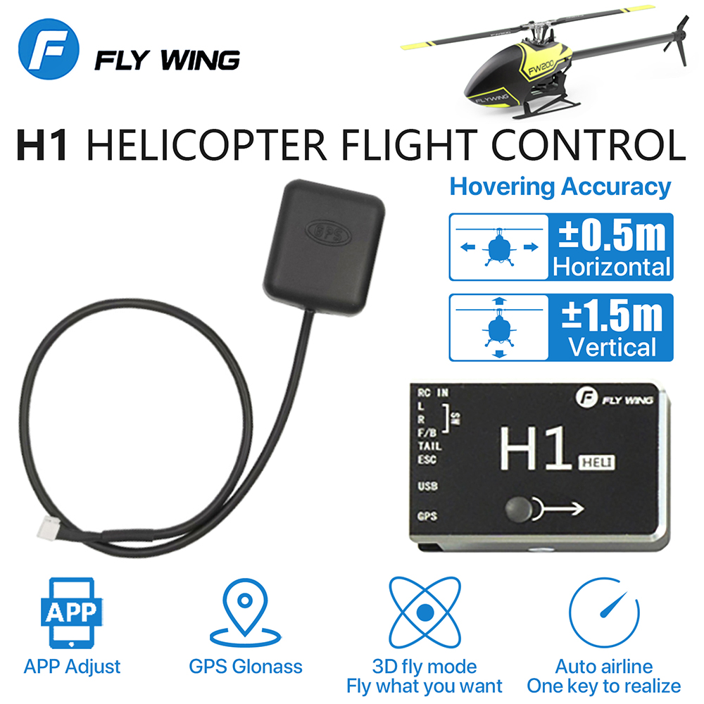 FLY Wing H1 RC GPS helicopter flight controller suitable for built-in mainstream helicopter FW200 FW450 ALIGN T-REX SAB GAUI Not PIXHAWK FC.Select the installation , you can steady flight.One-key to select auto airline , support update.Forward 8 fly , backward 8 , circular route , etc .GPS + GLONASS M8N high-end chip , fast startup speed and search star.Antenna precisely matched LNA low loss circuit , signal stability.Dual-mode GPS , more satellites and positioning accuracy