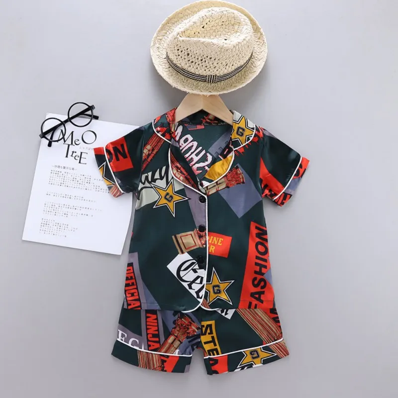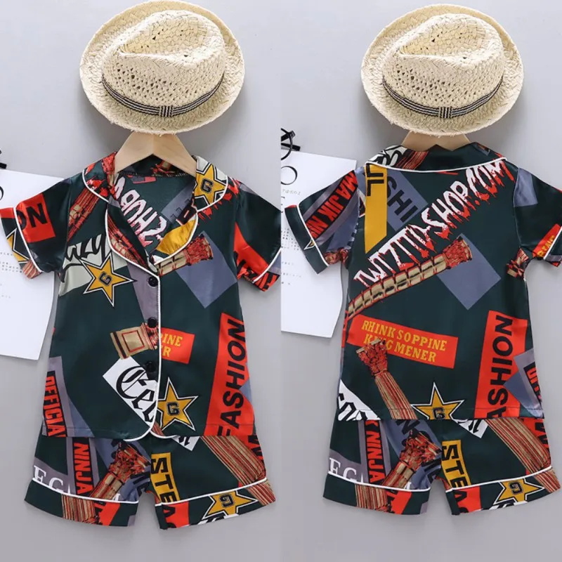 Casual short sleeve Pentagram English pattern sleepwear blouse shorts set, which will make your kids look cool and attractive