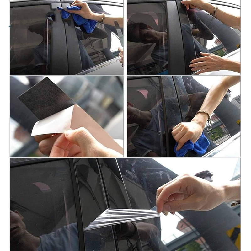 Each door trim piece is fully covered with adhesive, not just the edges.