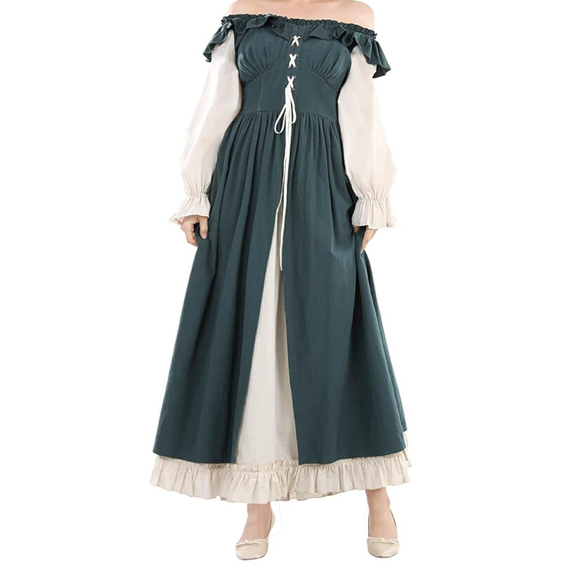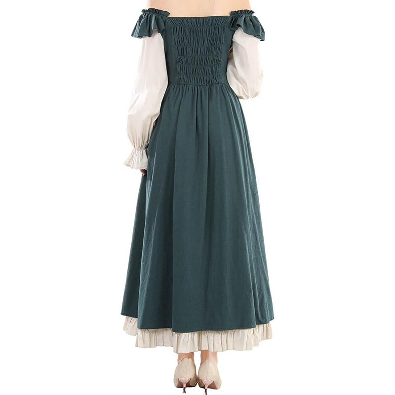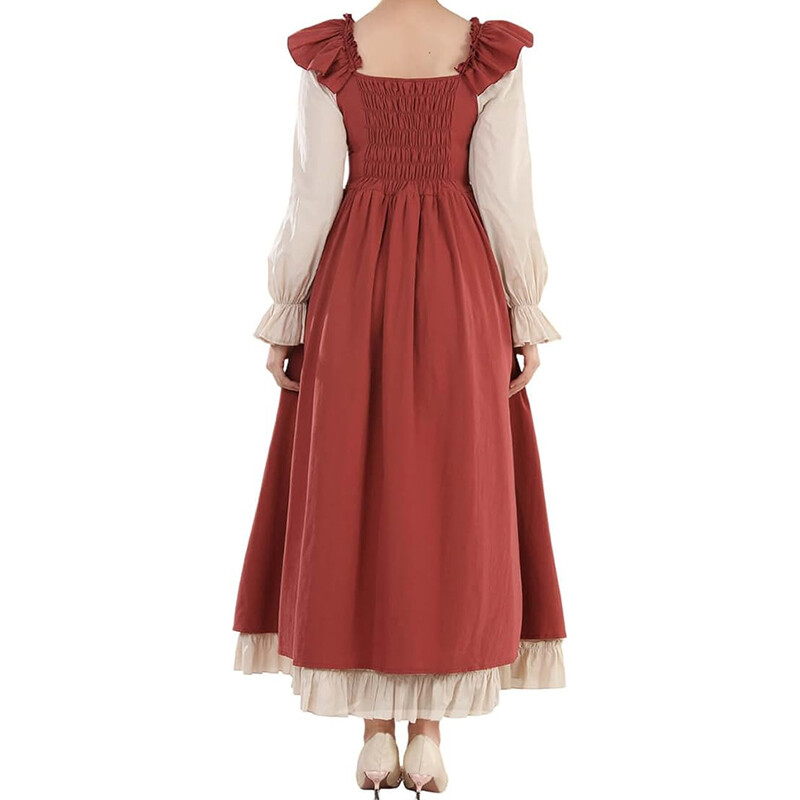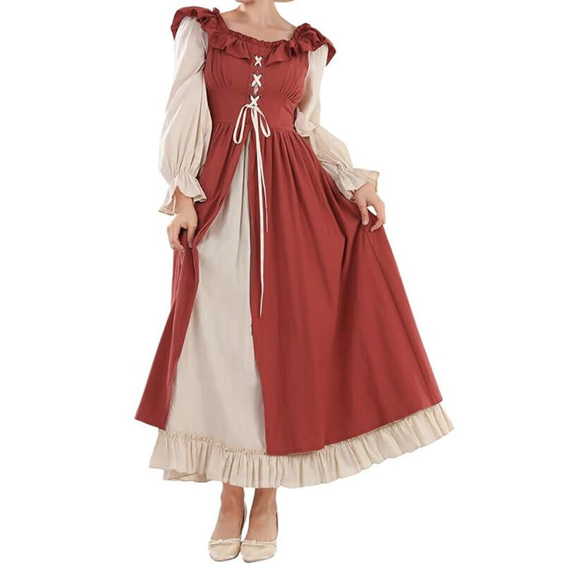 1.This is a medieval retro style dress, with solid colors as the main pattern.
