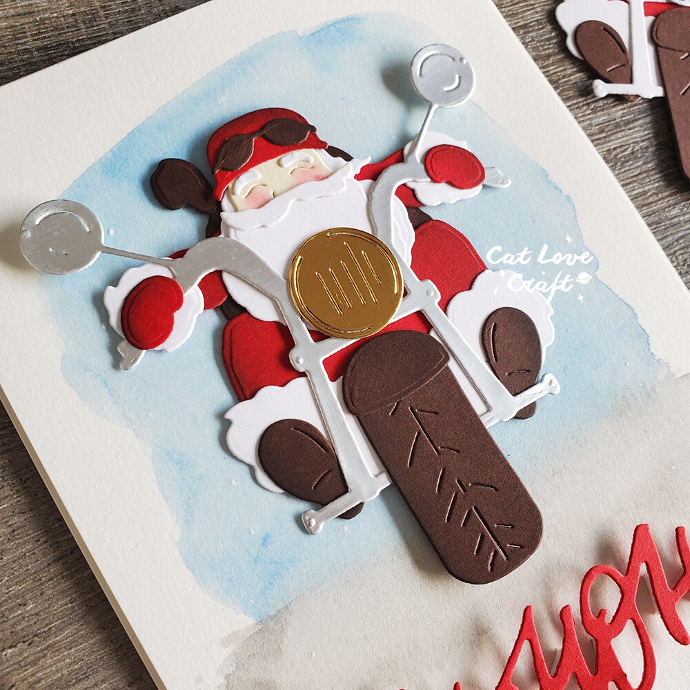 Christmas Santa Claus Riding Motorcycle Metal Cutting Dies Scrapbook Card Craft
