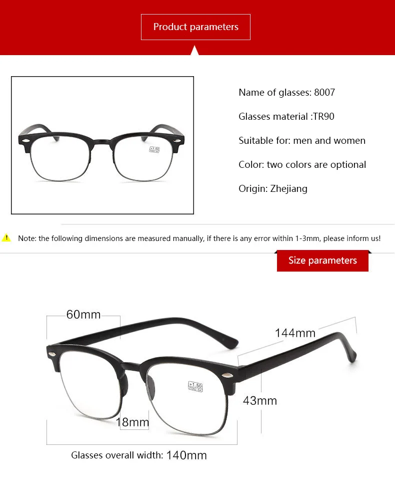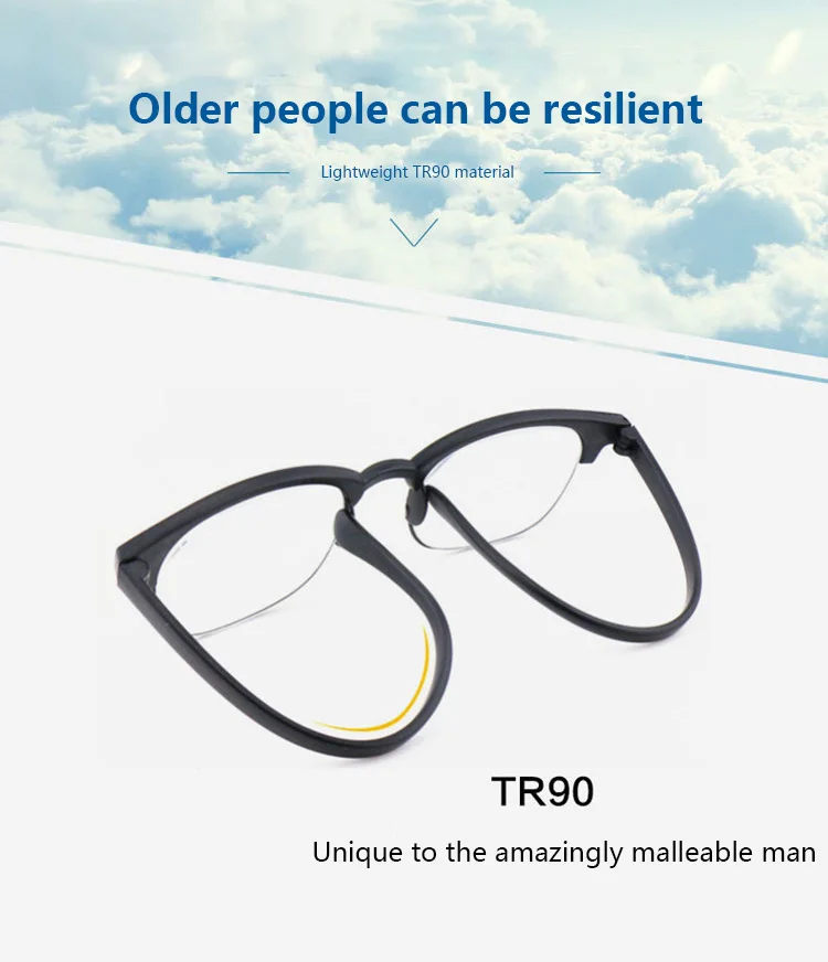 Discover the elegance and practicality of Vintage Half Frame Men's Reading Glasses. These unisex eyeglasses are designed with a timeless half-frame style that exudes classic charm while catering to modern needs. Crafted from TR90, a lightweight and durable material, they offer unparalleled comfort for prolonged wear.