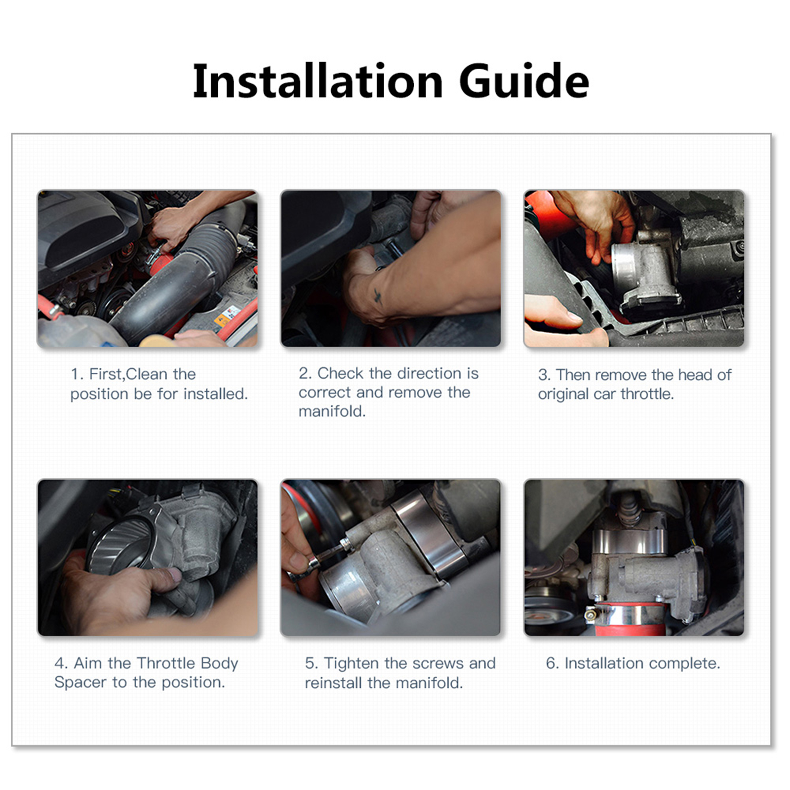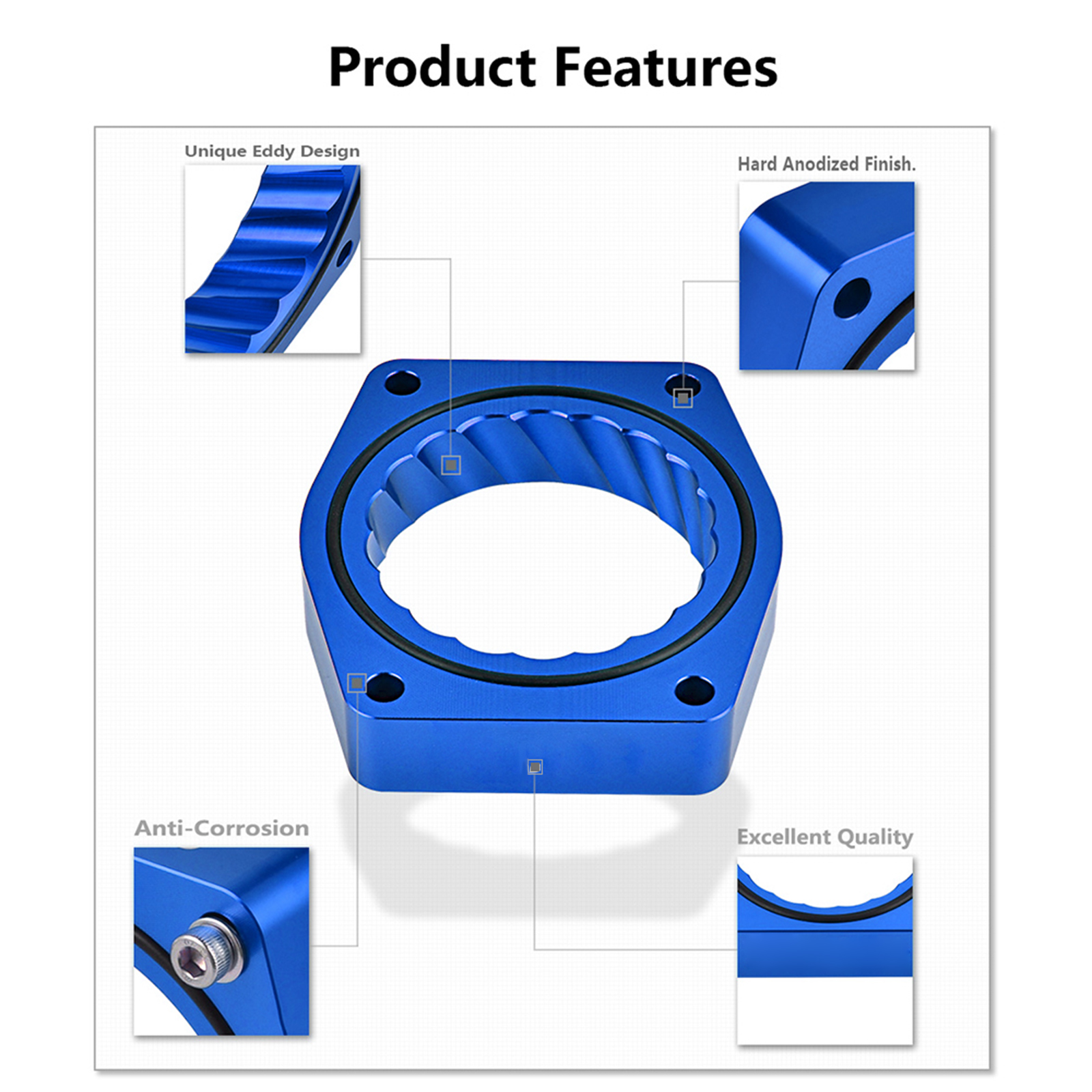 -- Our Throttle Body Spacers are precision CNC machined from Aircraft Grade 6061-T6 billet aluminum for lightweight, high strength and perfect fit and finish.