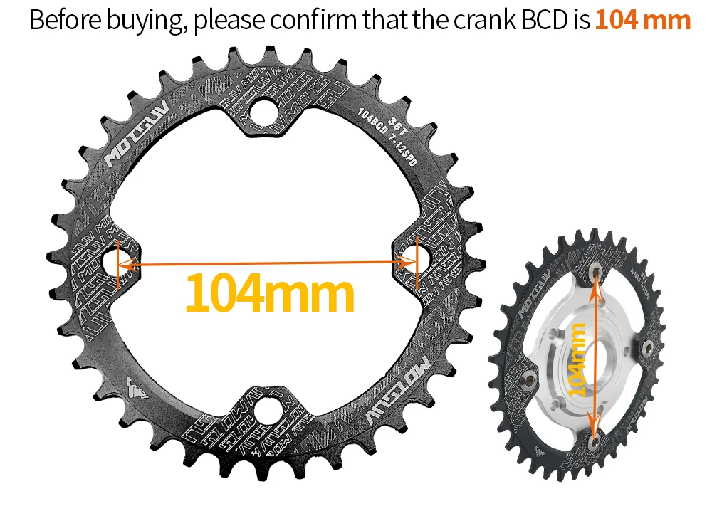 Please carefully determine your crank 104 BCD specification before purchasing.