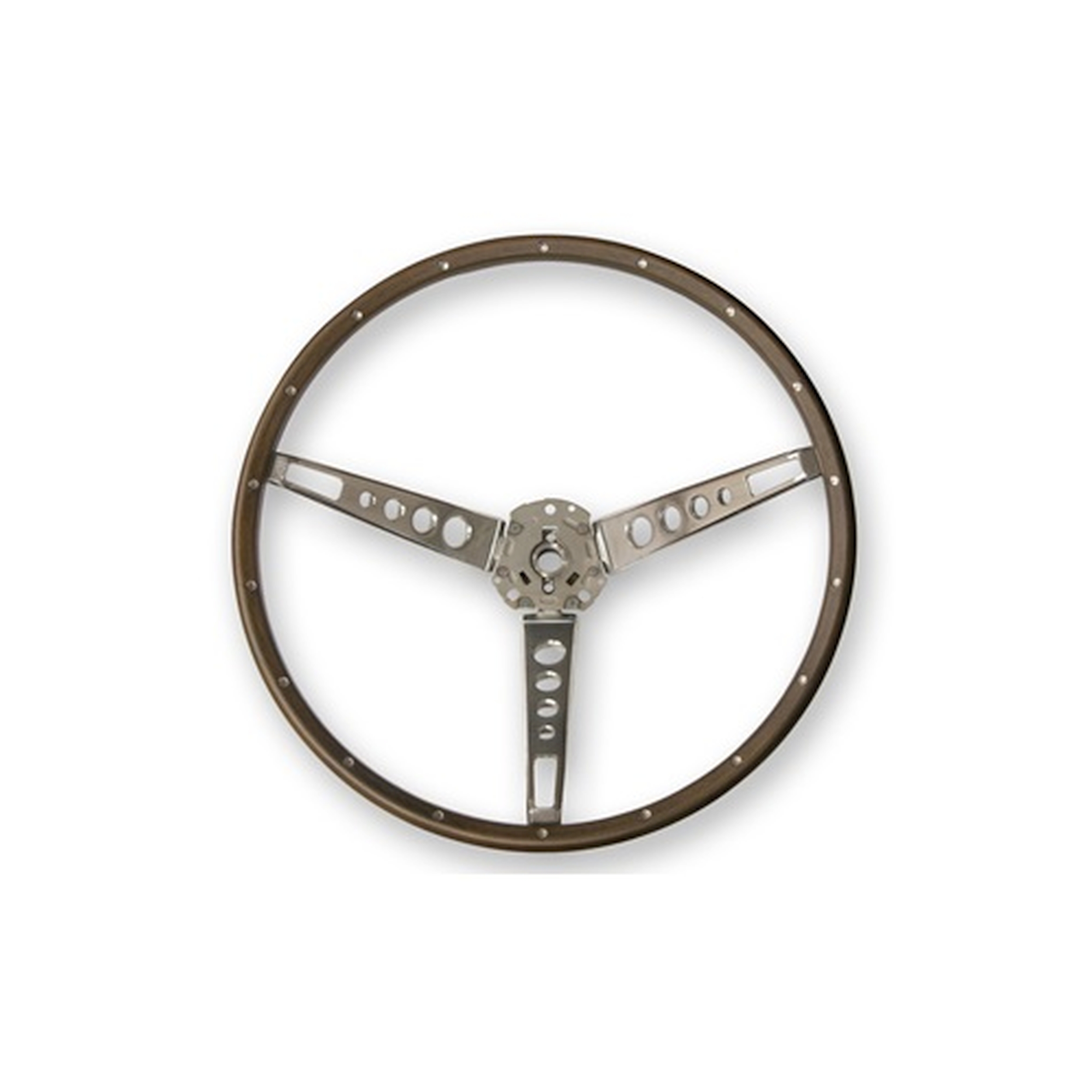 Reproduction of Pony interior simulated wood wheel. Wheel only, does not include horn ring, center cap, contact plates and hardware. This wheel was also optional on standard interior cars.