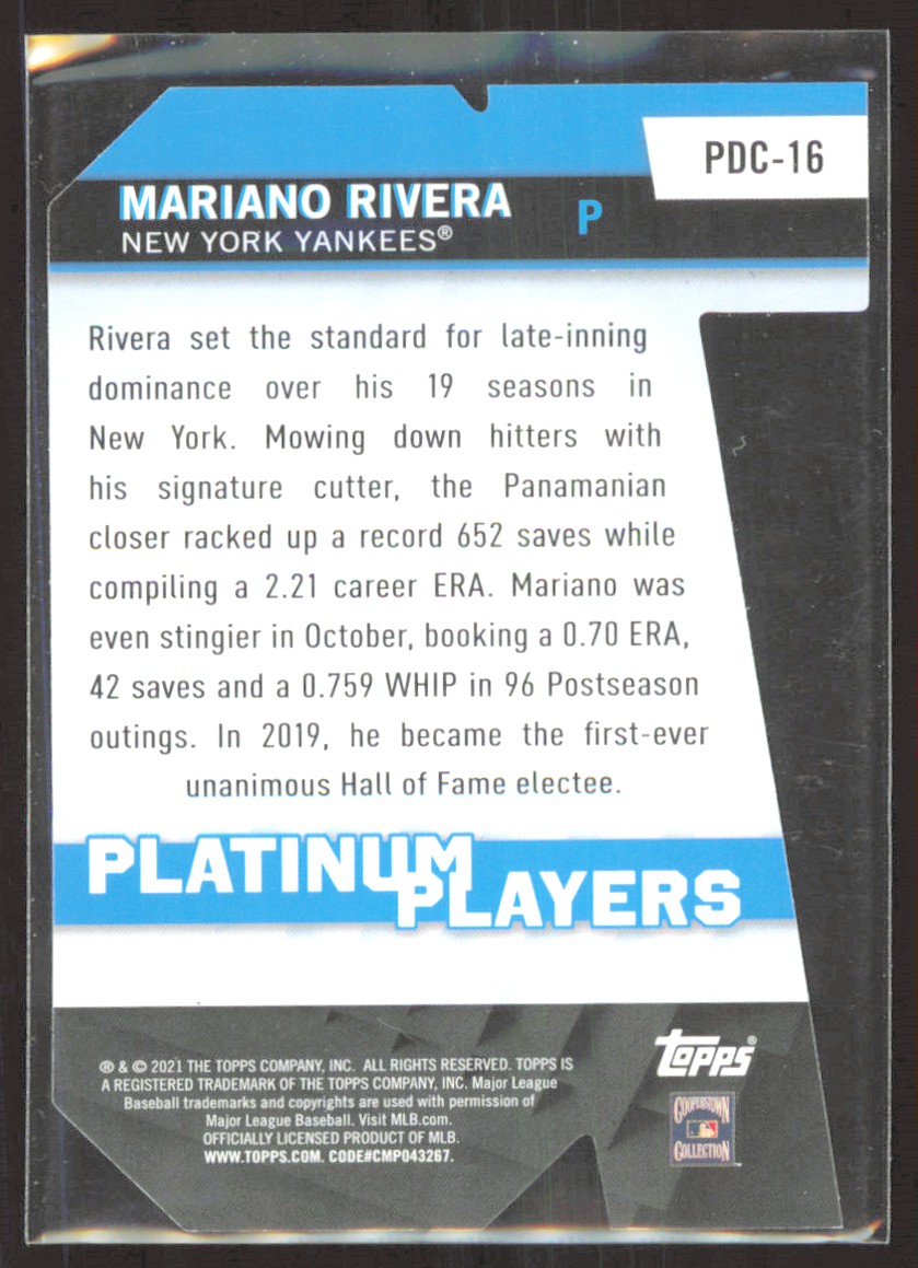 2021 Topps Platinum Players Die Cut Mariano Rivera #PDC-16