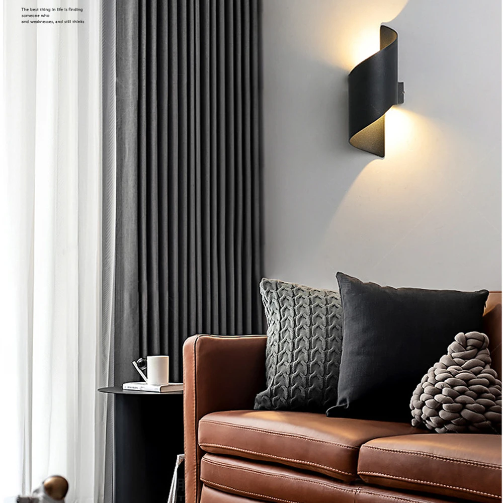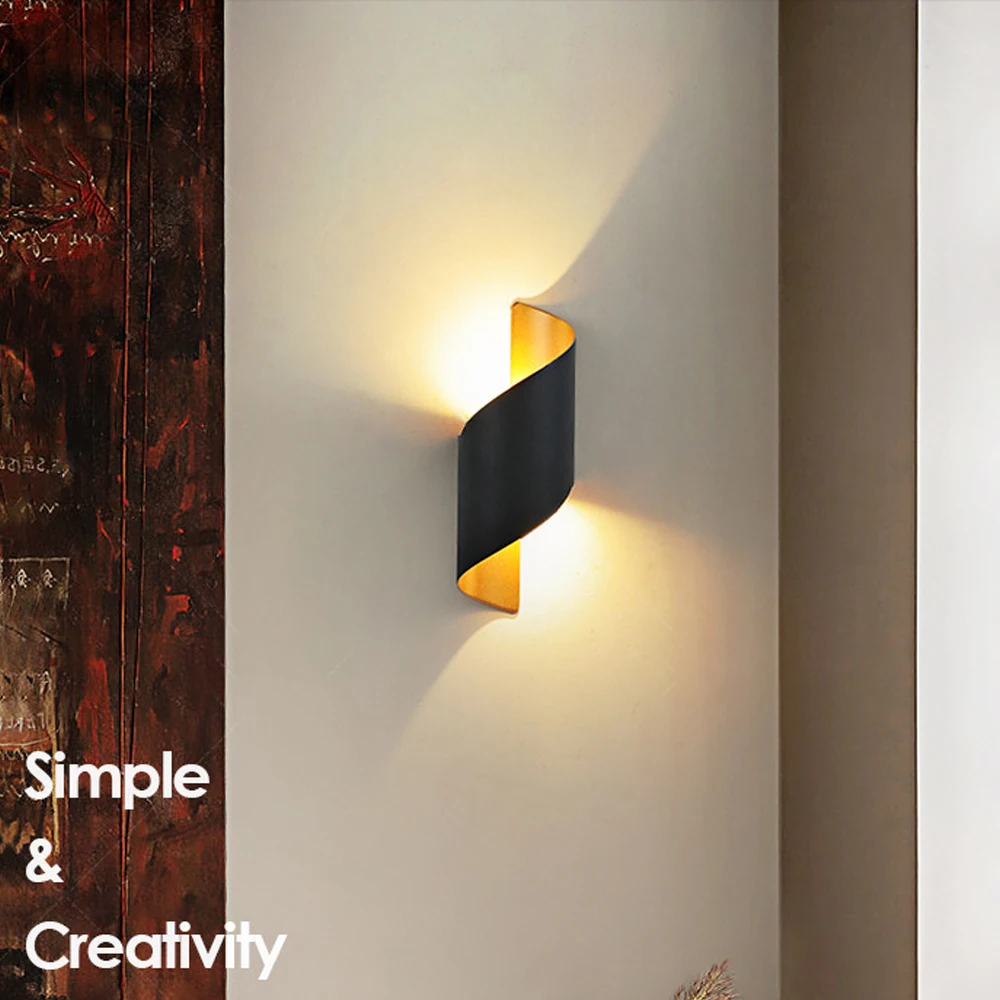 This wall lamp uses the upper and lower LED lights to emit fan-shaped soft lighting. The lamp body is designed in a spiral shape with a matte aluminum material.The design is simple and stylish, creating a warm and comfortable atmosphere.