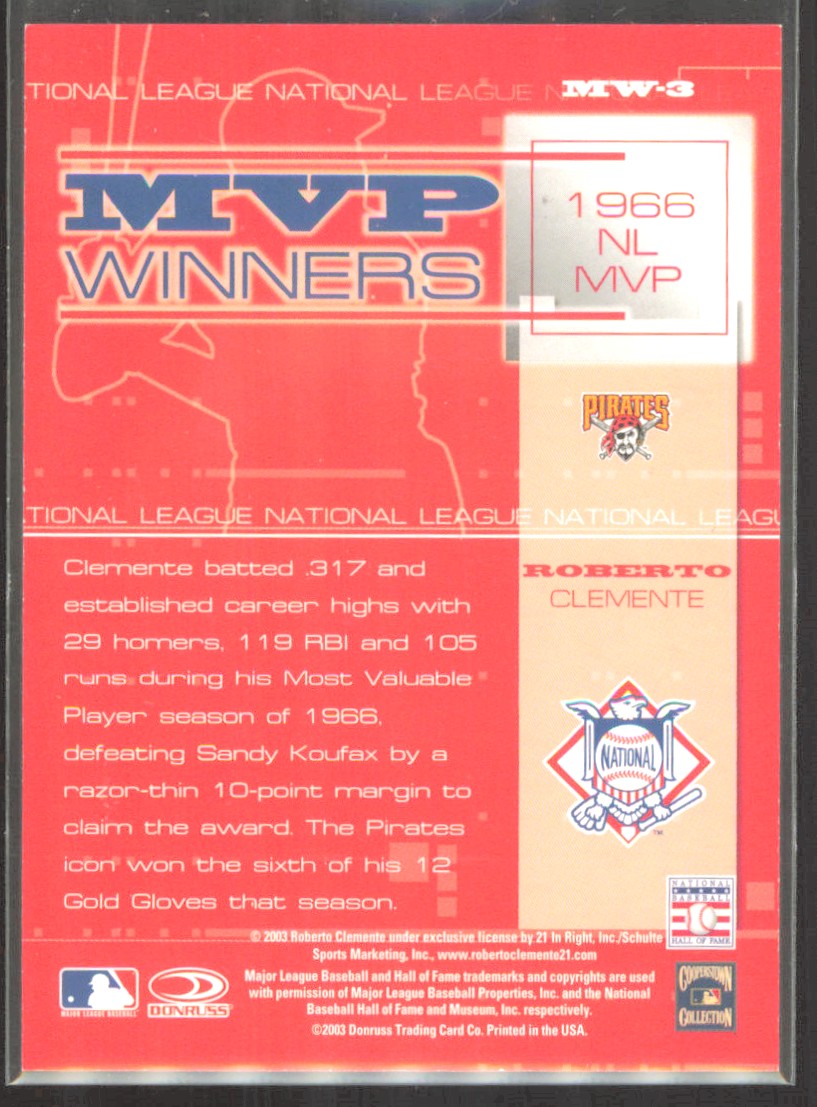 2004 Leaf MVP Winners Roberto Clemente #MW-3