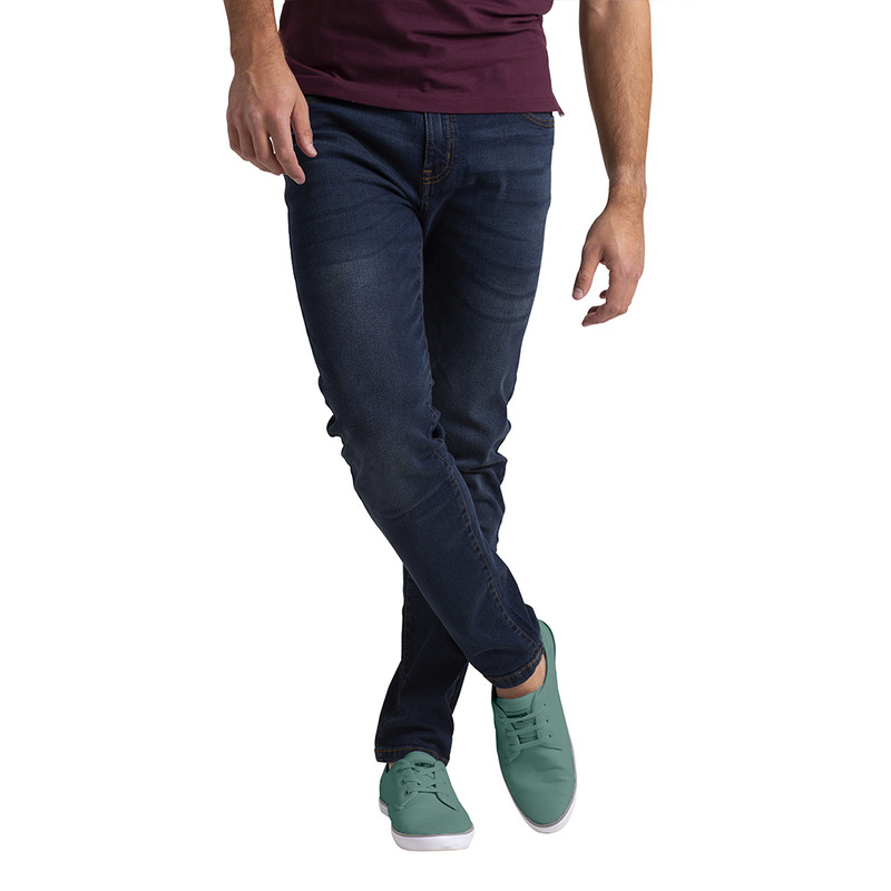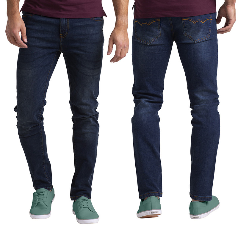 Mens Dark Blue Denim Jeans Casual Stretch Relaxed Straight Slim Fit Various Size