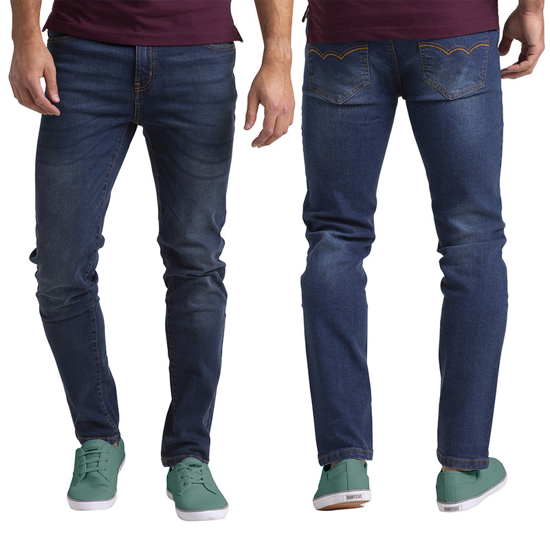 Mens Casual Stretch Denim Jeans Relaxed Fit Straight Leg Indigo Stylish Pants