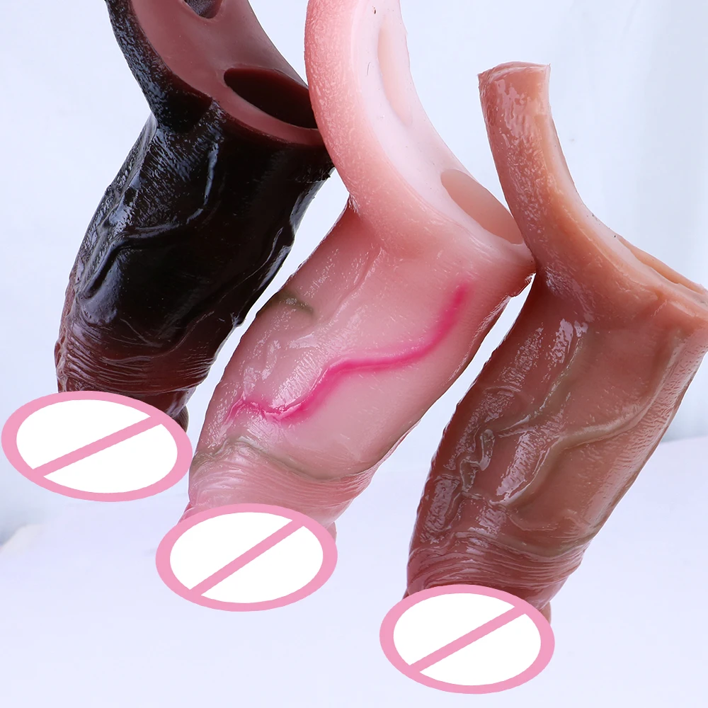 White Skin Black Colors Realistic Male Cock Cover For Men Dick Enlargement Silicone Penis Extension Sleeve Adult Sex Toy