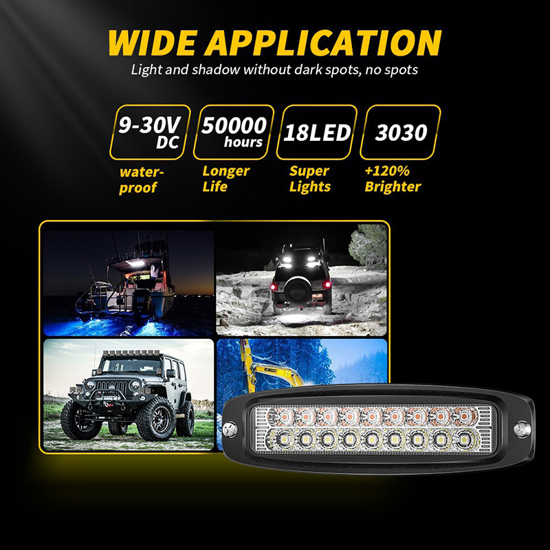 VOLTAGE: Built-in IC circuit with the voltage range from 12V to 24V to prevent LED work light kit from being damaged by voltage variation and spikes.