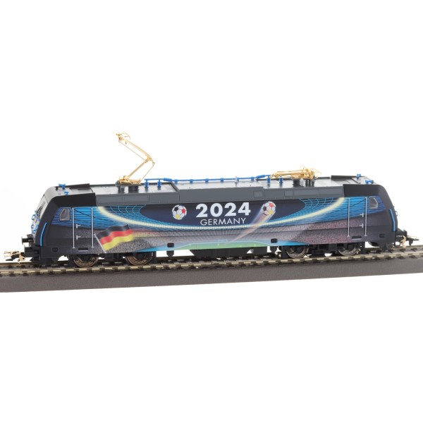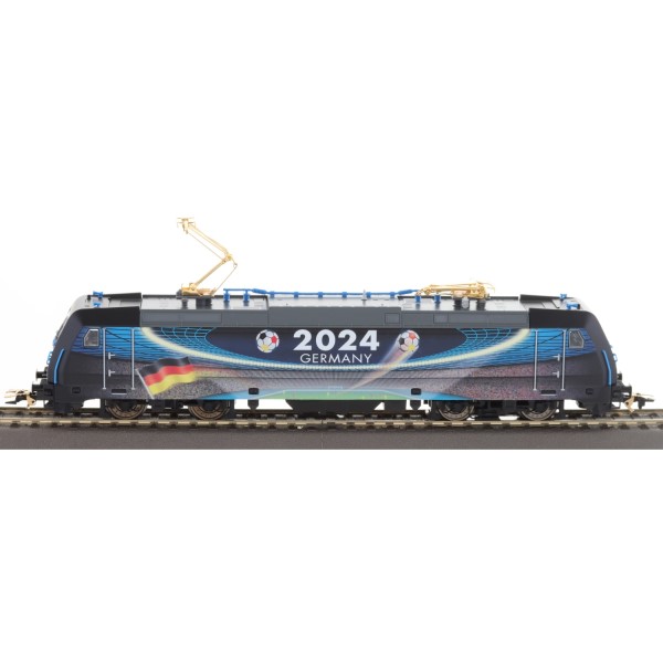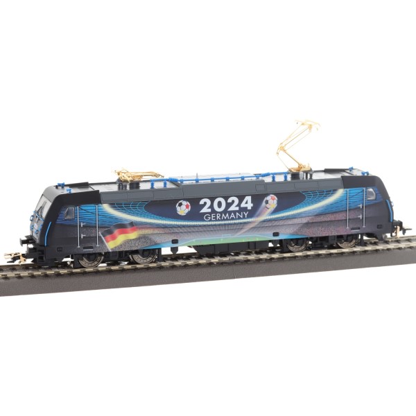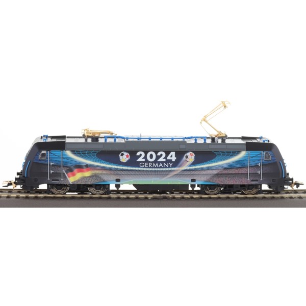 Die BR 185.2 ist in einem exklusiven Design gestaltet, das die Fußball-Europameisterschaft 2024 in Deutschland feiert. Die auffällige und hochwertige Farbgebung macht diese Lokomotive zu einem echten Blickfang auf Ihrer Modellbahnanlage. Die Lokomotive ist mit einem vergoldeten Stromabnehmer ausgestattet, der dem Modell zusätzliche Eleganz verleiht und die Verbindung zwischen dem Fußball-Event und dem Modellbau kunstvoll herstellt. Durch die Limitierung auf nur 2024 Exemplare weltweit ist diese Lokomotive nicht nur ein Highlight auf der Anlage, sondern auch ein begehrtes Sammlerstück.