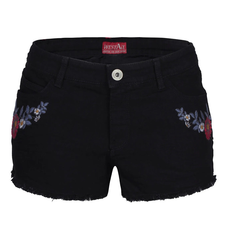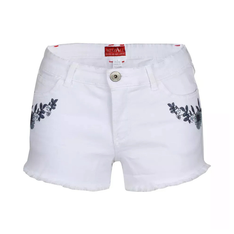 These shorts are finished with a metal zipper fly and metal button closure.