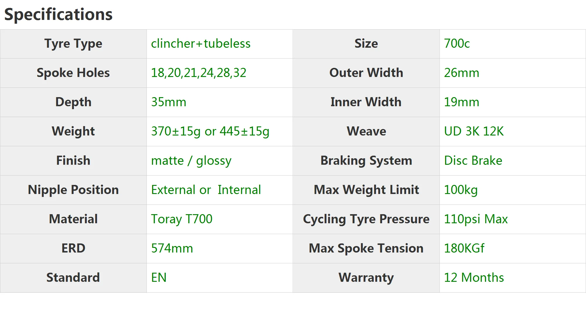700c carbon rim road disc brake 35mm depth 26mm width 18 20 21 24 28 32 holes clincher tubeless UD