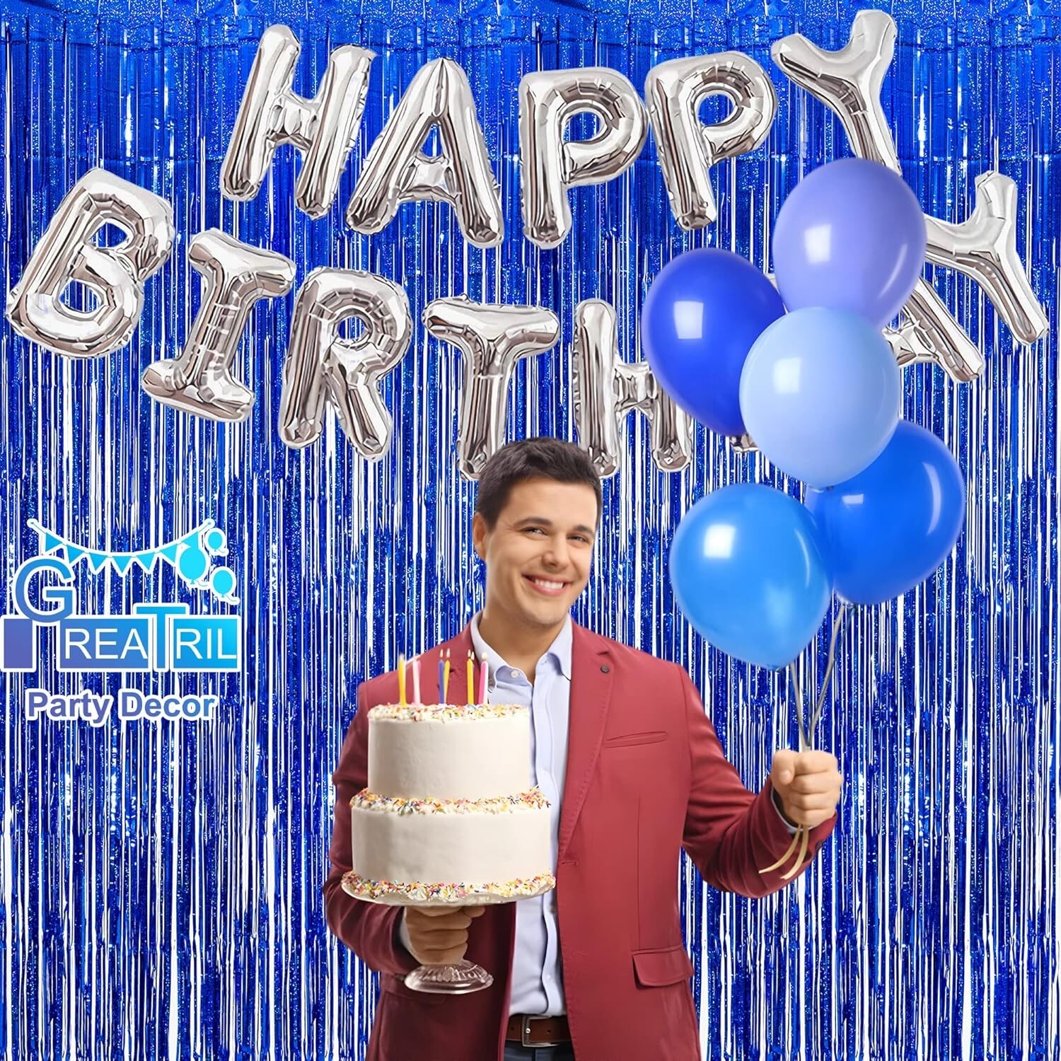 Dark Blue Foil Fringe Curtain Backdrop Pack
