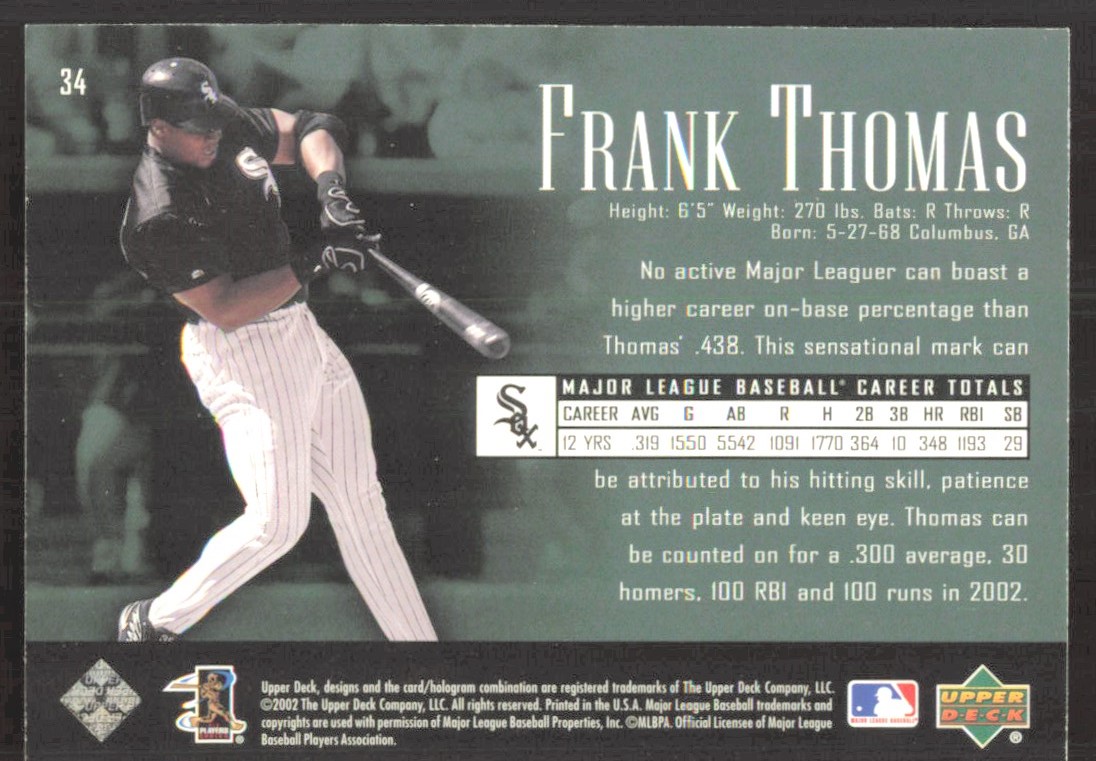 2002 Upper Deck Piece of History Frank Thomas Chicago White Sox #34