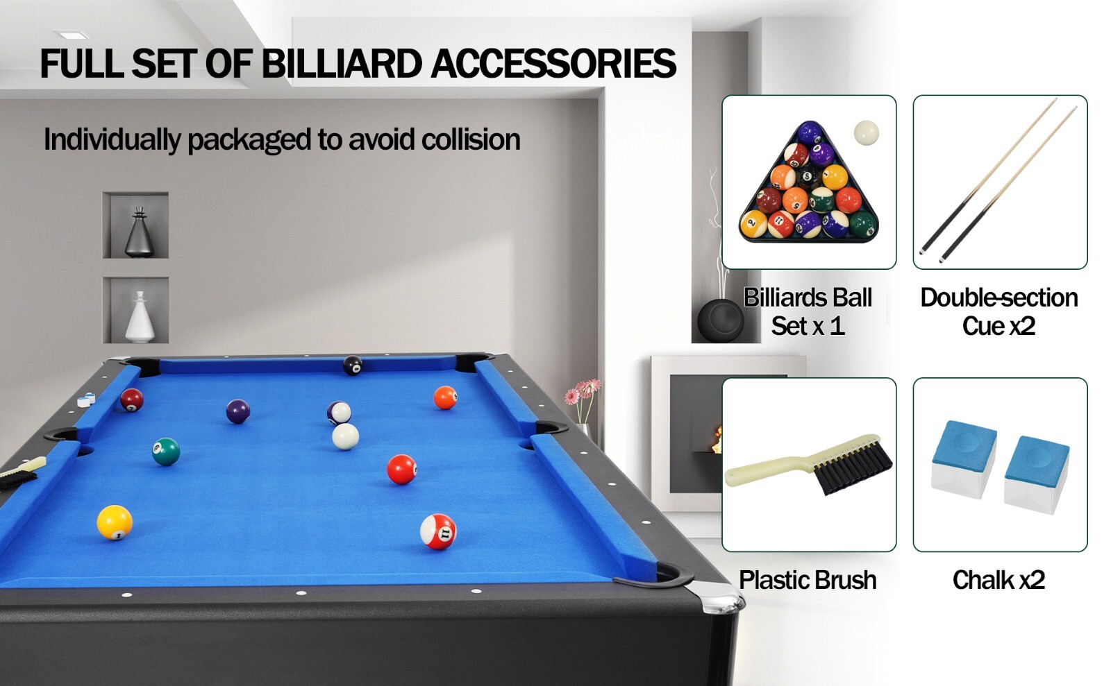 The pool table top comes pre-assembled, just connect the legs, detailed installation instructions are included so you can easily set up the pool table. The upgraded size of the pool table contributes to a better gaming experience.