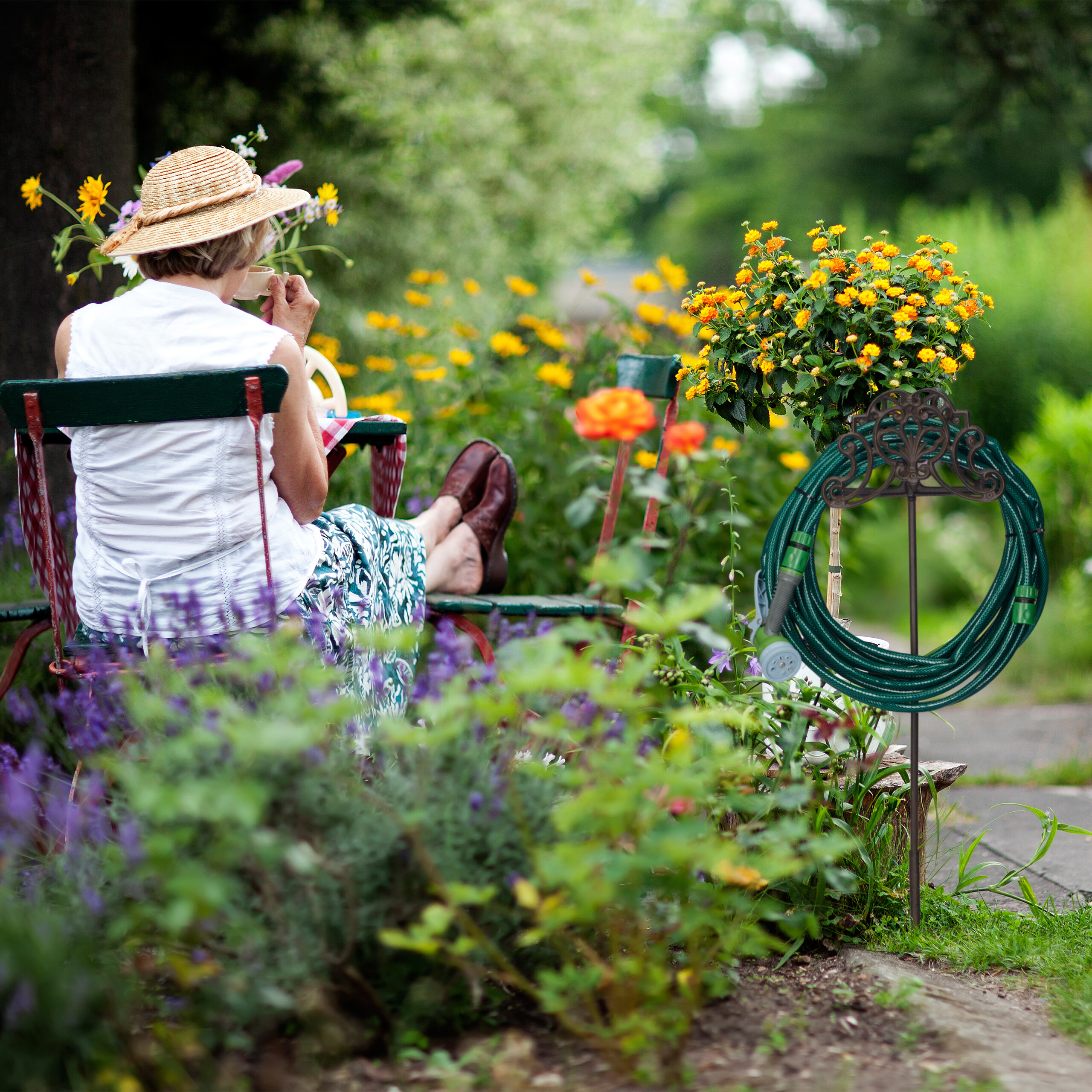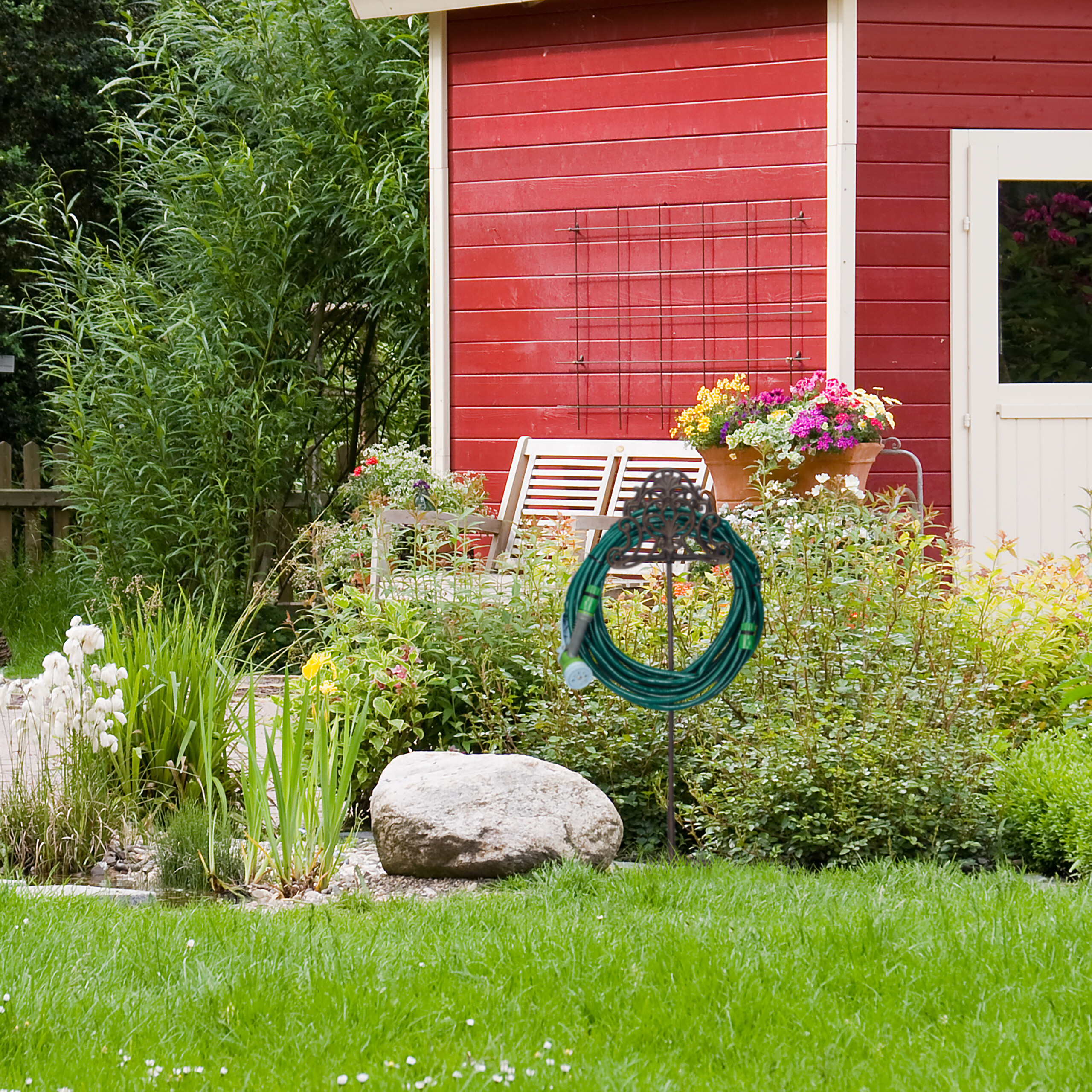 - Zum Stecken: Freistehende Wasserschlauchhalterung mit Erdspieß nach Belieben im Garten platzieren