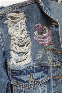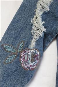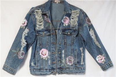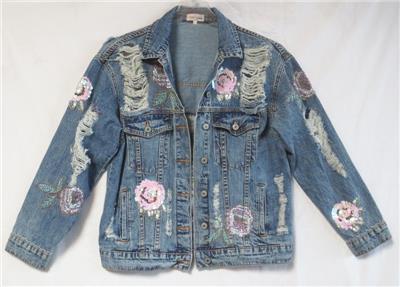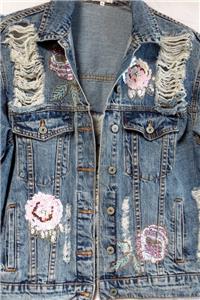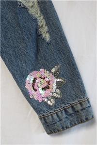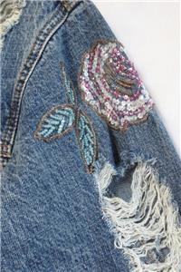 Embellished w/ sequins & beads. Distressed styling. The condition is very nice.
