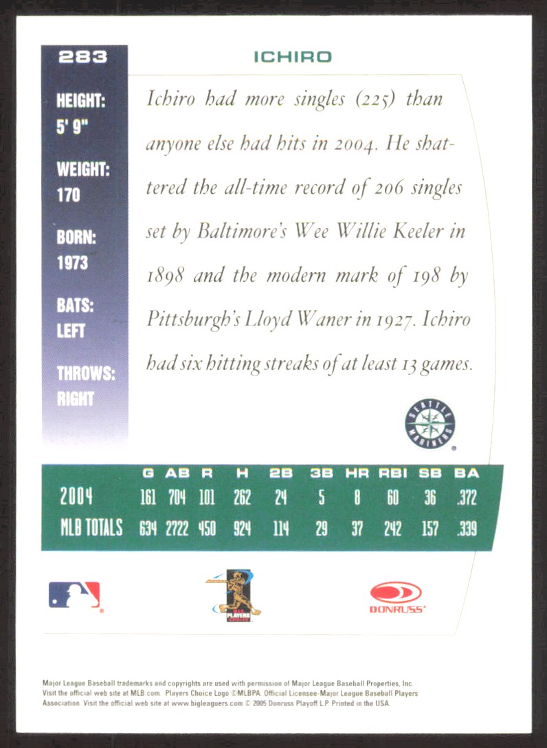 2005 Donruss Team Heroes Ichiro Suzuki Seattle Mariners #283