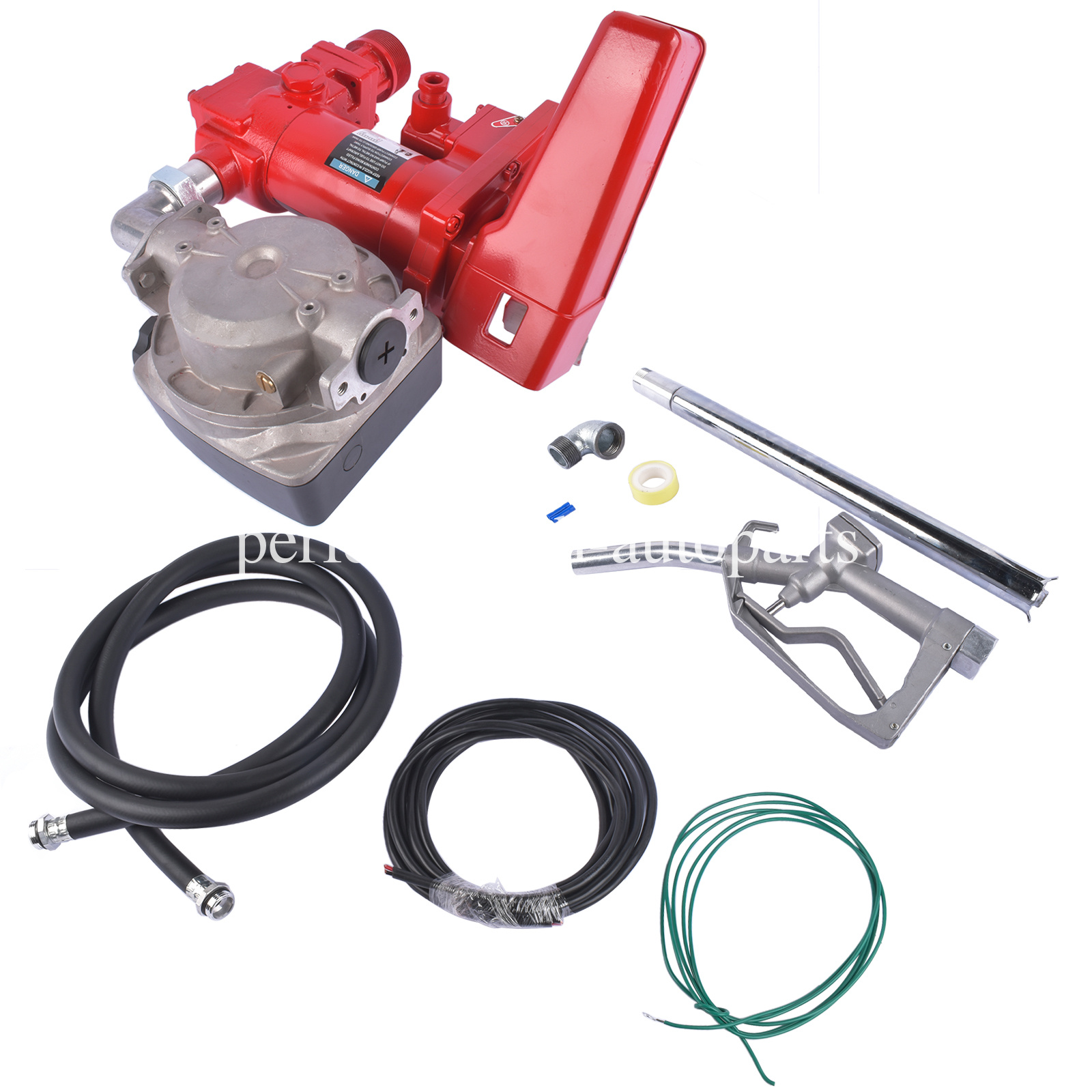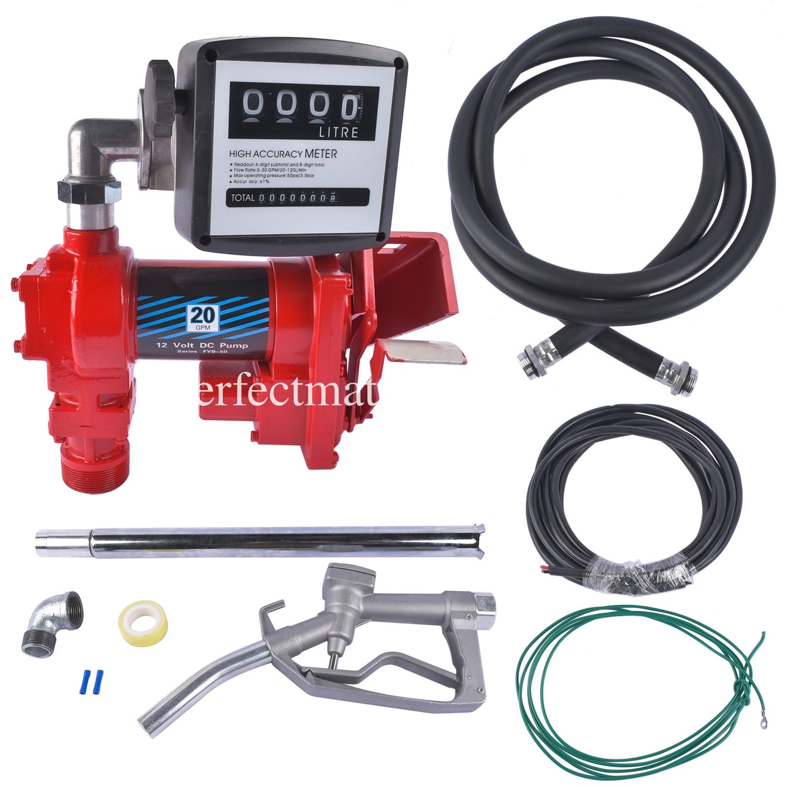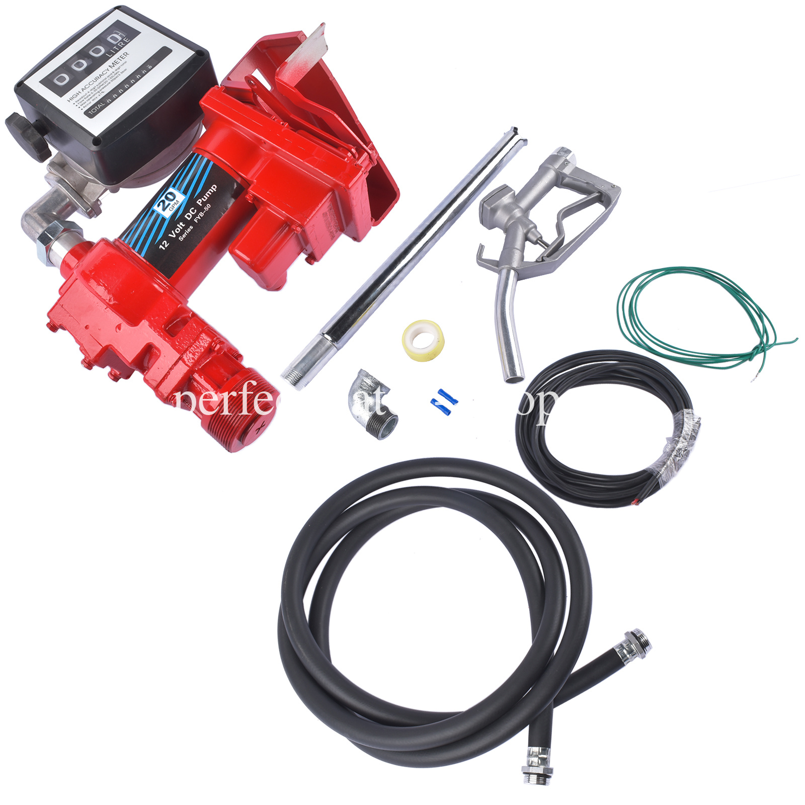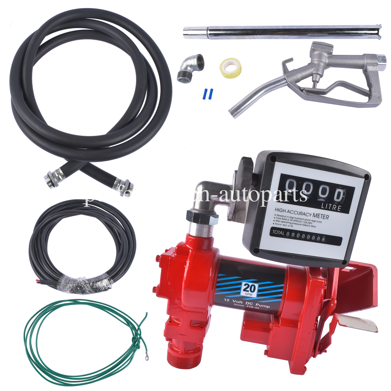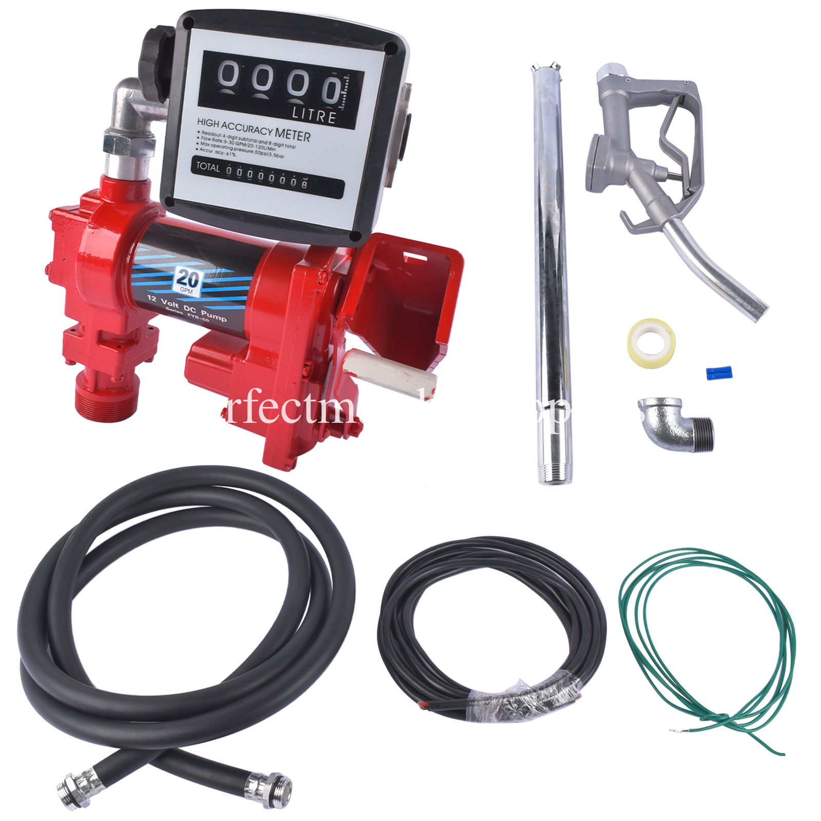1*20GPM 12V Red Fuel Transfer Pump with Discharge Hose & Manual Nozzle + Fuel Flow Meter (As Pics Shown)