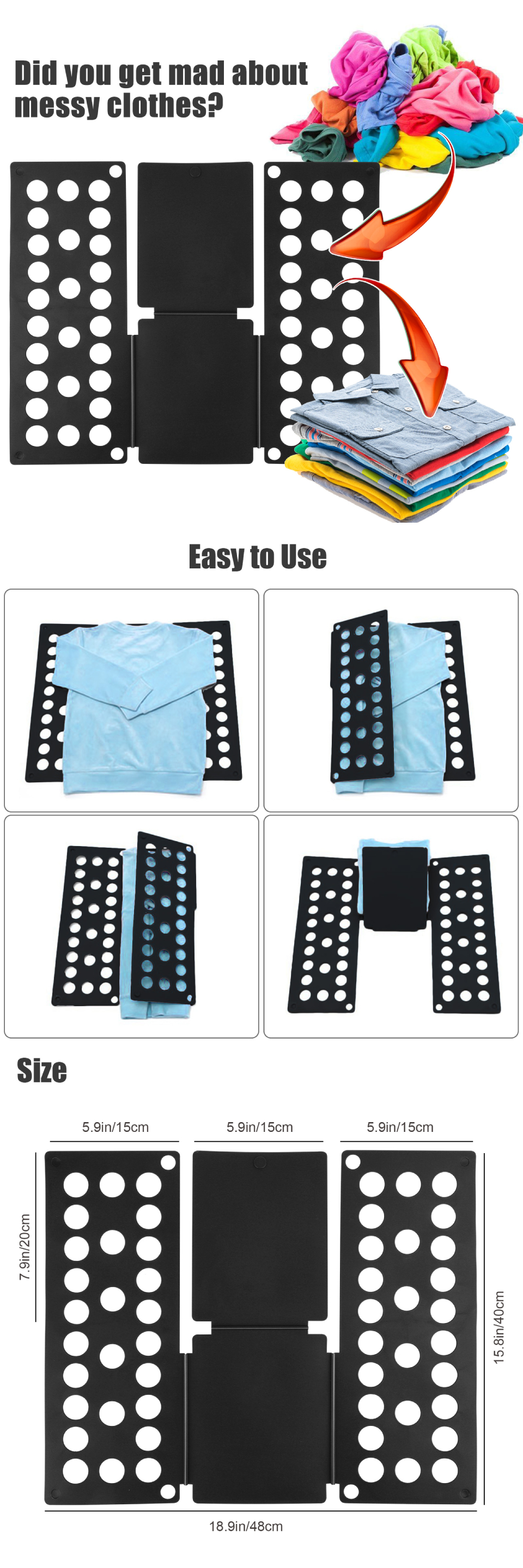 Product Specification | Type | Folding Clothes Artifact | | Material | PP New Material | | Quantity | 1 | | Color | Black | | Size | 48x40cm (18.9x15.75in) |
