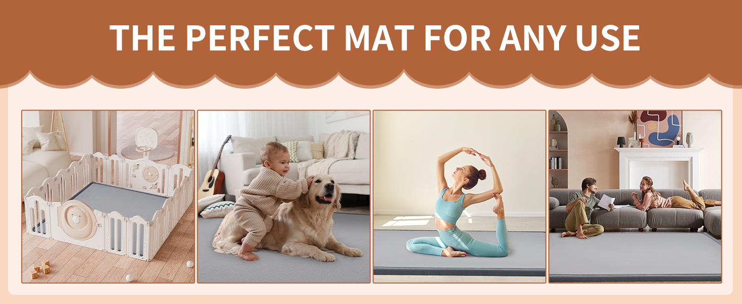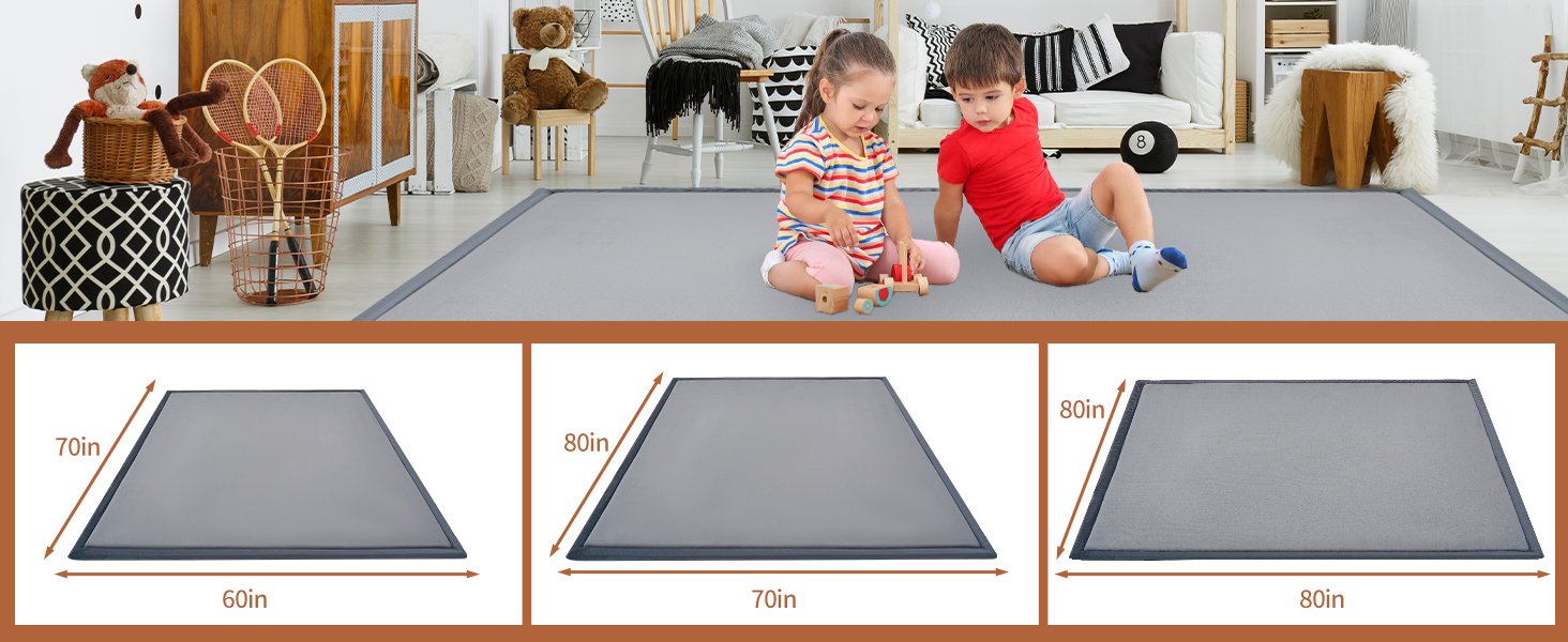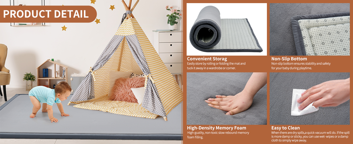 THINK COMFORTABLE PLAYMAT - Our play mat features super soft coral velvet fabric with high-density memory foam padding, offering approximately 1.4 inches of thickness. It's breathable, colorfast, and gentle on baby's skin, providing a cushioned surface that helps reduce the impact of falls during playtime DESIGNED FOR PLAY AND EXPLORATION - Perfect for early childhood training, our floor mats create a safe and soft environment for kids to play, crawl, and explore. They protect against bumps and falls, allowing children to develop confidently VERSATILE AND PORTABLE - Our tummy time mat serves as a travel play mat, tent mat, or indoor area rug. Whether indoors or outdoors, its durability and versatility make it ideal for various settings IDEAL GIFT FOR YOUNG ONES - Our play mat is a perfect gift for birthdays, holidays, or baby showers. It's a practical addition to any home with infants or toddlers, offering ease of storage and portability for on-the-go play CARE INSTRUCTIONS AND DURABILITY - Upon opening, the mat may have creases which can be resolved with steaming or ironing. It's durable, fade-resistant, and features non-slip dots for added safety