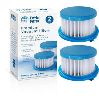 Fette Filter - A32F02 HEPA Filter Compatible with Ryobi ONE+ 18V Cordless Wet/Dry Hand Vacuum PCL702 PCL702B PCL702K. Compare to Part #A32F02. Pack of 2