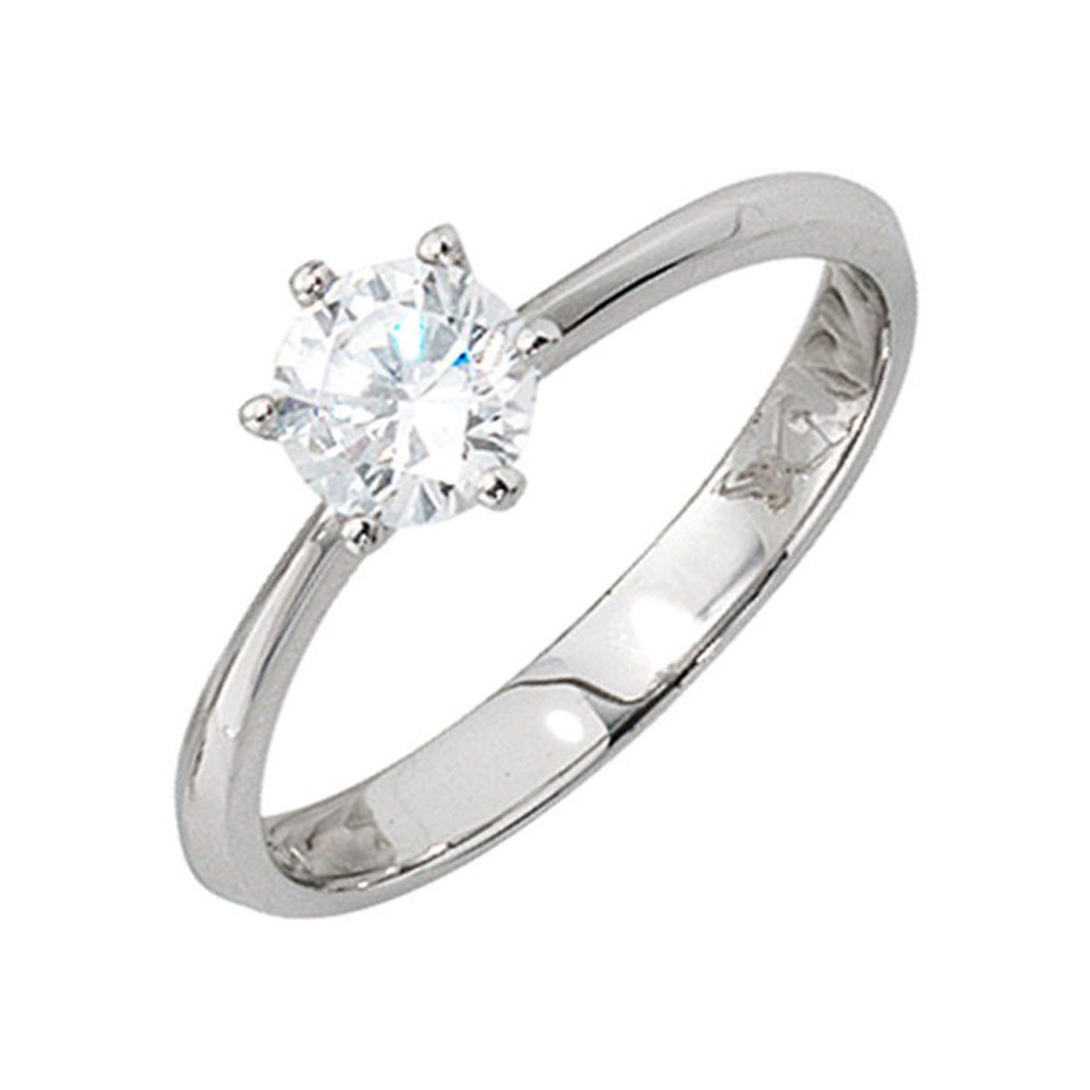 Damenring aus 925 Sterlingsilber, rhodiniert, mit einem Zirkonia, Durchmesser ca. 6,8 mm, Durchmesser des Zirkonias ca. 5,4 mm