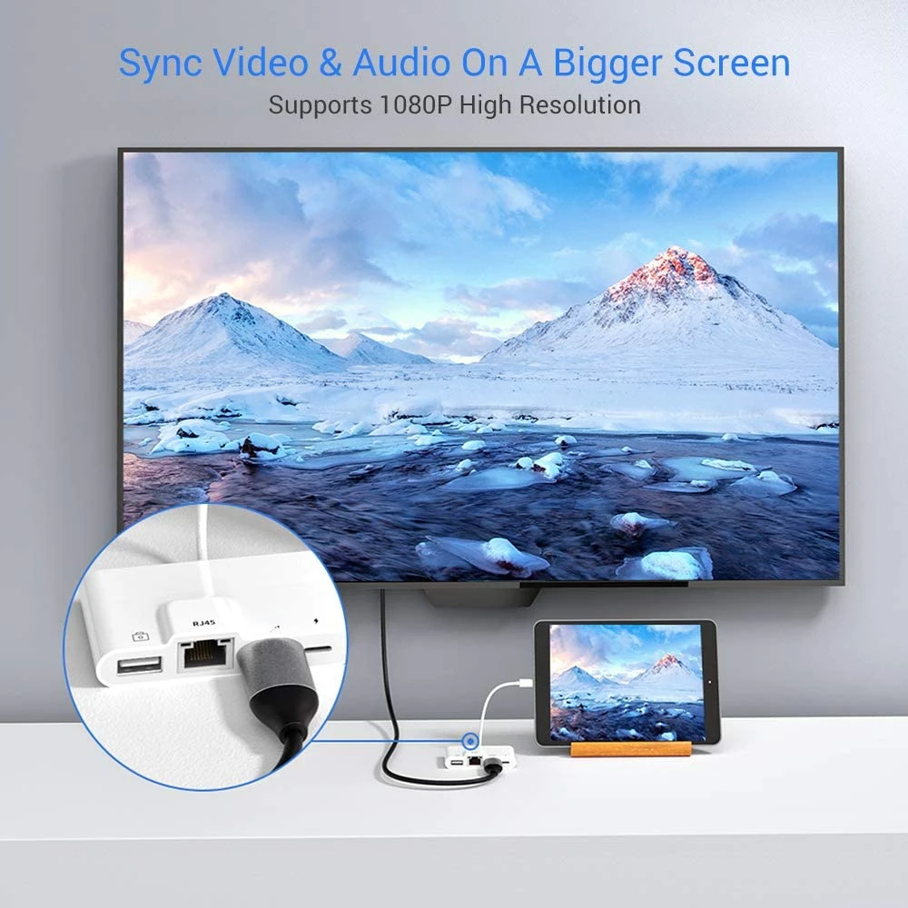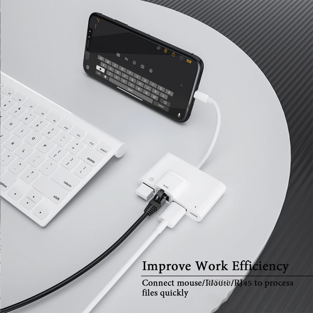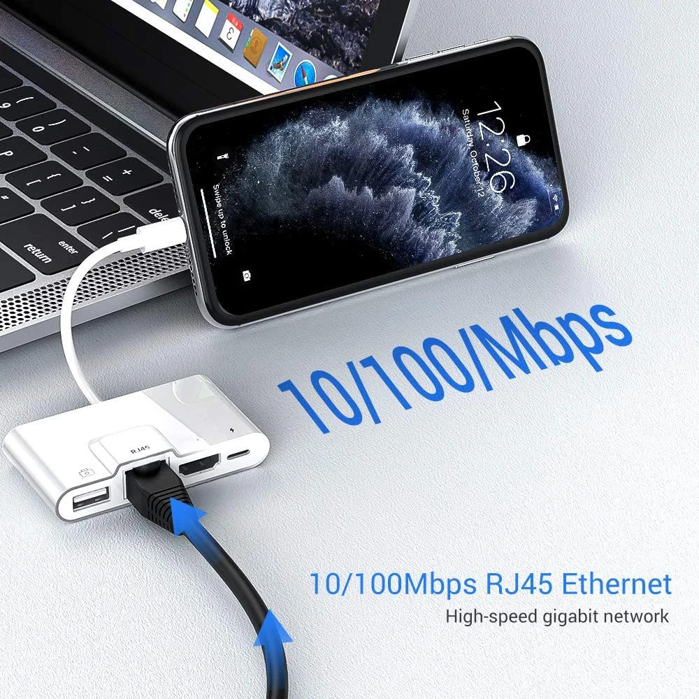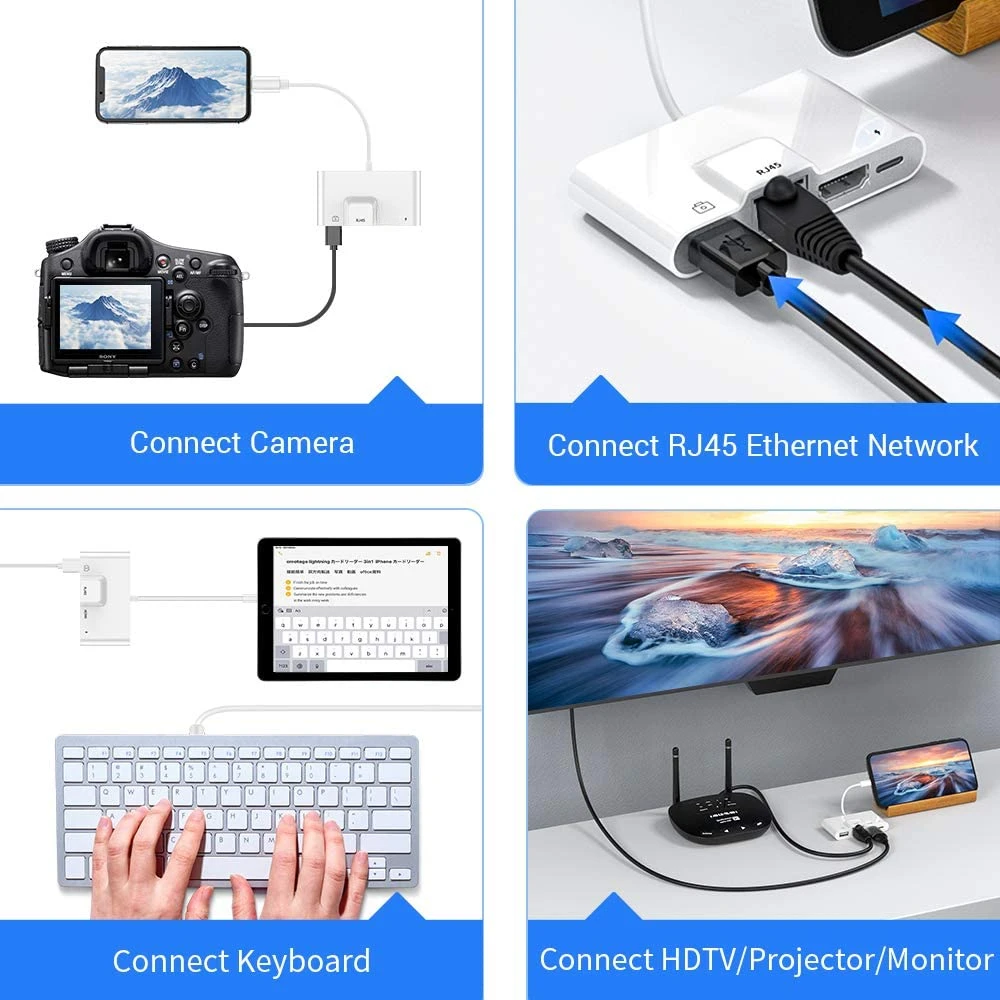 For Lightning to RJ45 Ethernet OTG Digital AV Adapter HDMI-compatible LAN Wired Network USB Hub Sync Screen Converter for iPad/iPhone 14