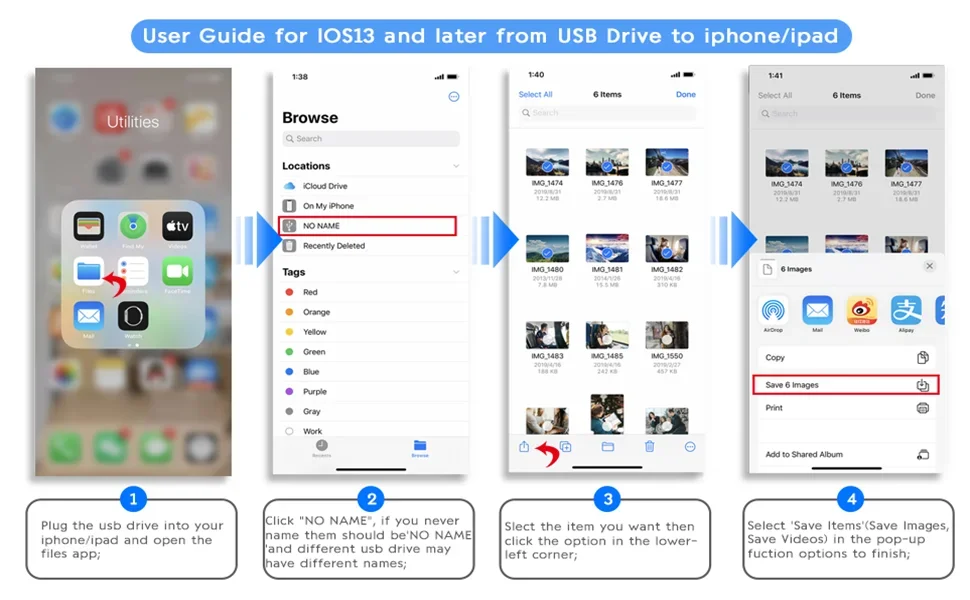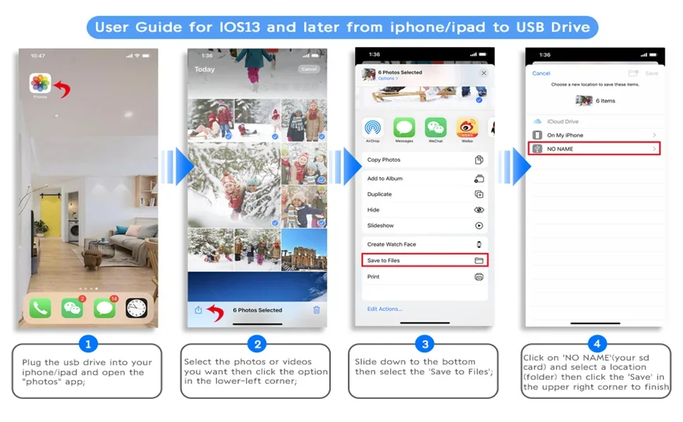 This OTG USB Adapter supports many peripherals like Hubs, USB Flash Drives, Mouse, MIDI Keyboard, Camera, Ethernet Adapters, Guitar, Audio Interface, Mixer, Digital Piano and more. For newest iOS 13, with our iPhone camera adapter, you can import export photos / video / files ( Word / PPT / Excel ) /