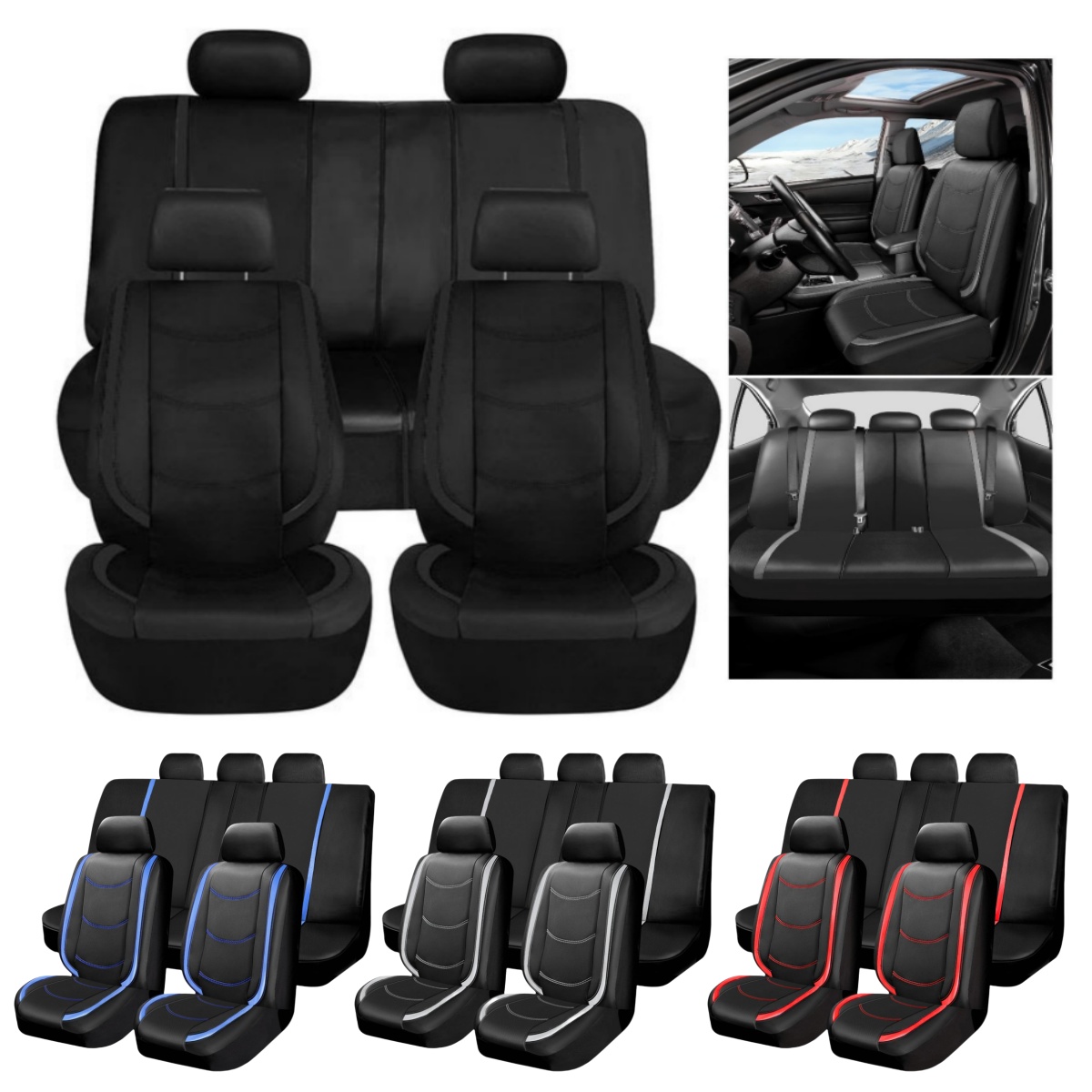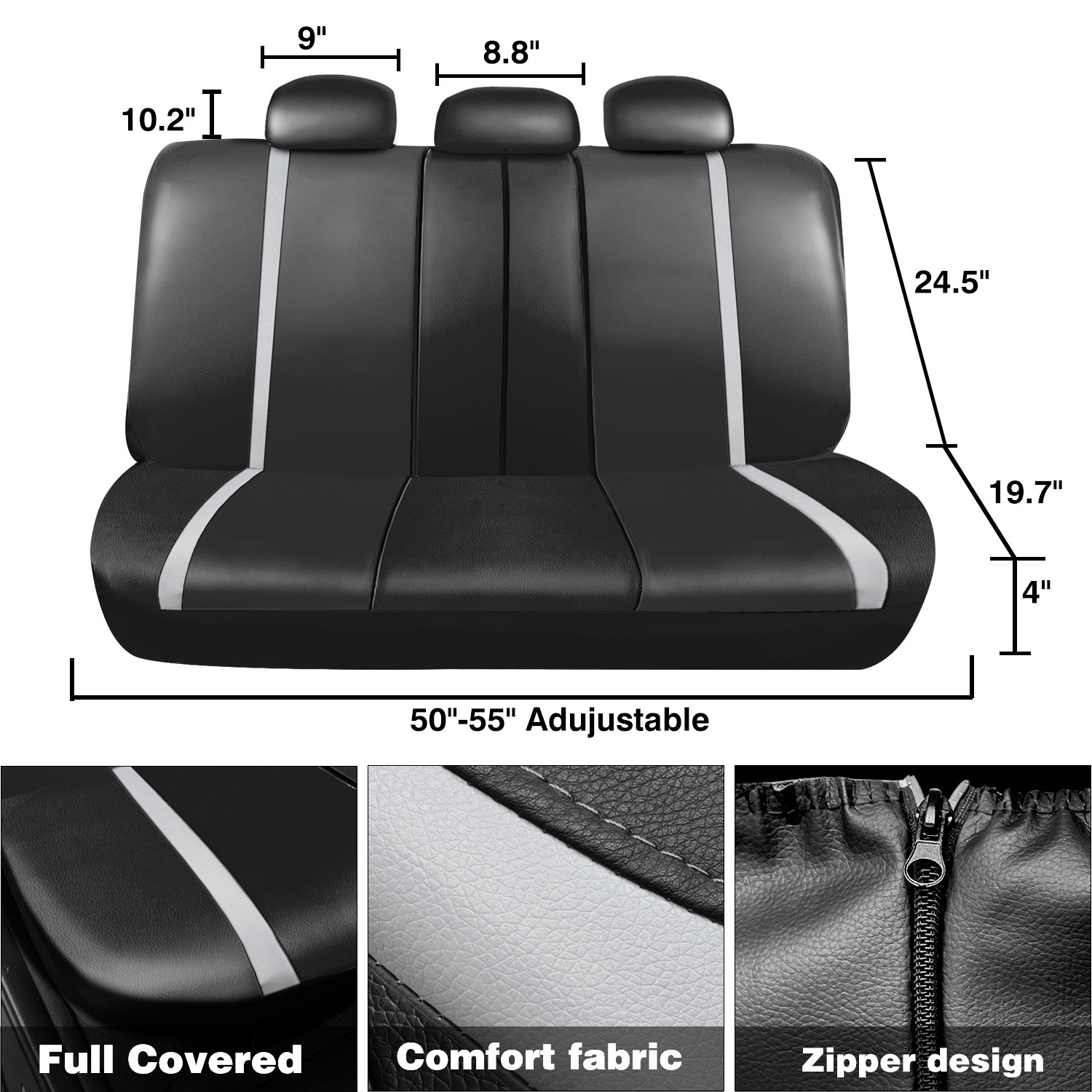 1.MATERIAL: The seat cover is made of high-grade artificial leather,which has strong sweat absorption,comfortable and breathable,and no unpleasant odor in the sun.This universal full set car seat protector is very comfortable, wear-resistant, waterproof and breathable, keeping your car seat from spills ,stains, dirt & spot. If you have a dog it will protect seat from hairs or dirty feet