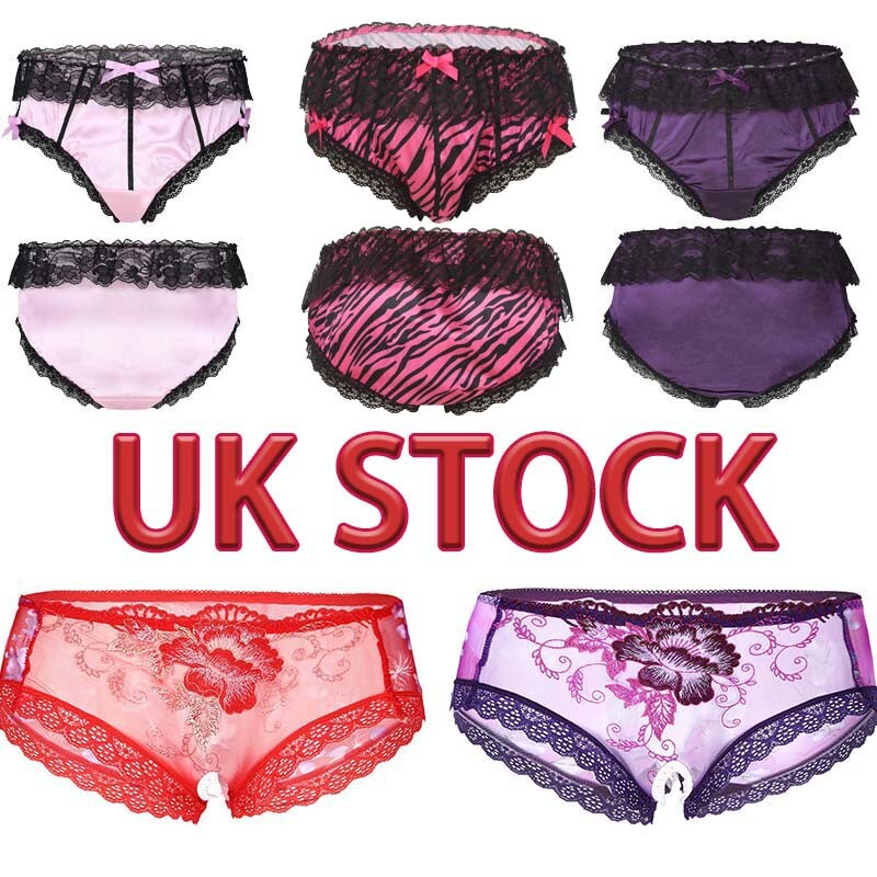 Men Sissy Satin Underwear Thong Lace Patchwork Panties G-string Briefs T-back.