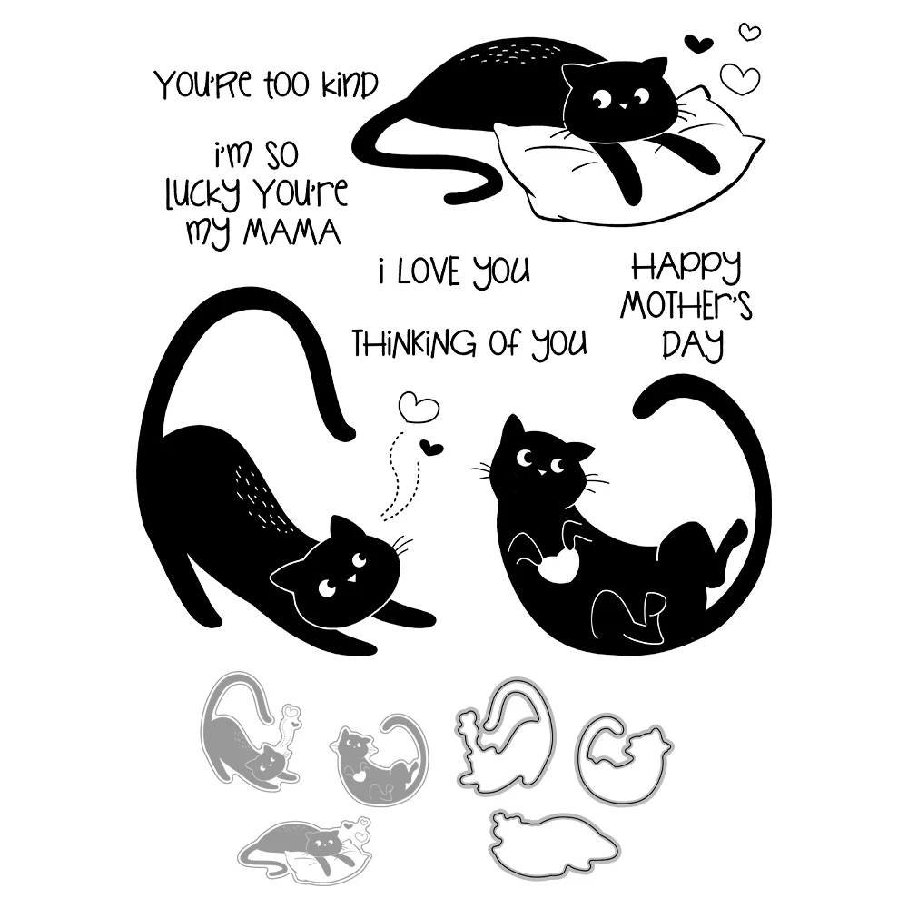 Adorable Cat I'm Lucky You're My Mama Metal Cutting Dies Clear Stamps Craft