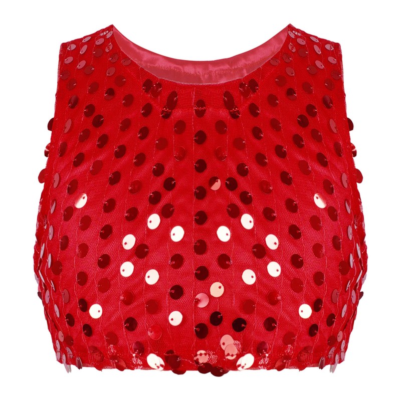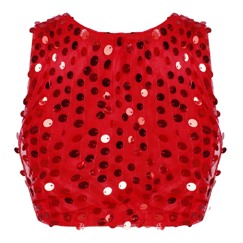 The crop top features with sleeveless and round neckline, shiny sequins decorated in allover, simple solid color design.