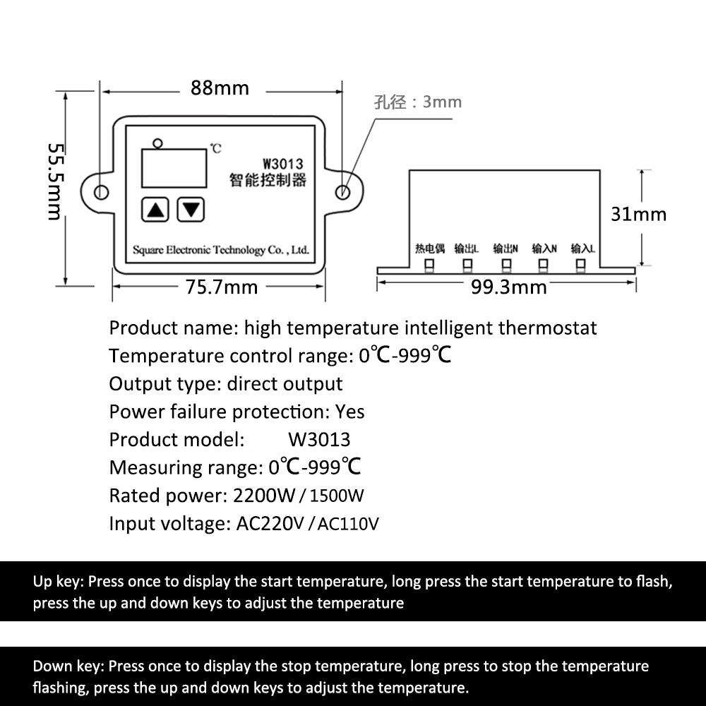 W3013 Digital Thermostat K Thermocouple High Temperature Controller AC110/220V