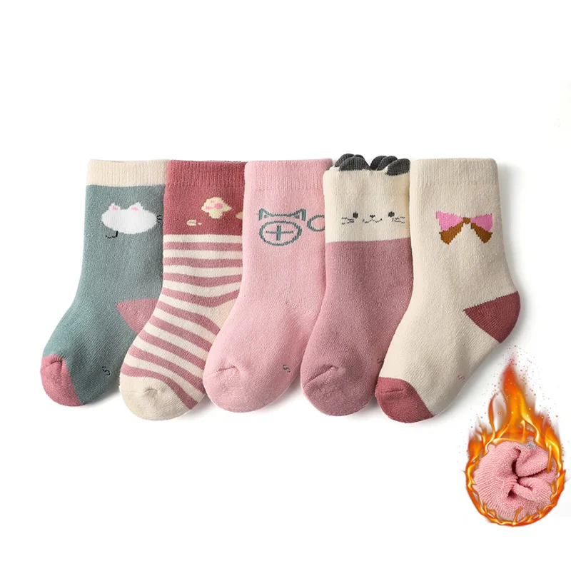 5 Pairs/Lot Toddler Thermal Kids Cotton Socks For Boys Winter Short Warm Soft Girls Thick Terry Children Snow Socks Miaoyoutong