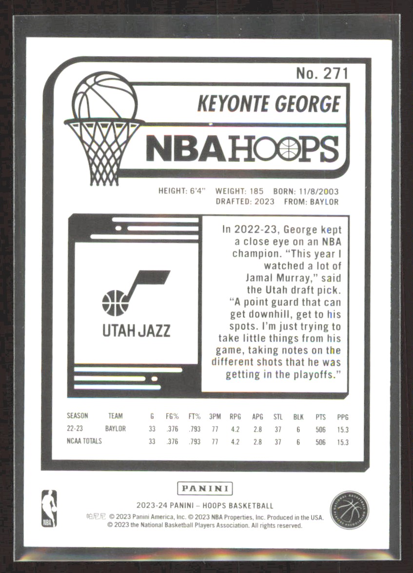 2023-24 Panini NBA Hoops Keyonte George Rookie Utah Jazz #271