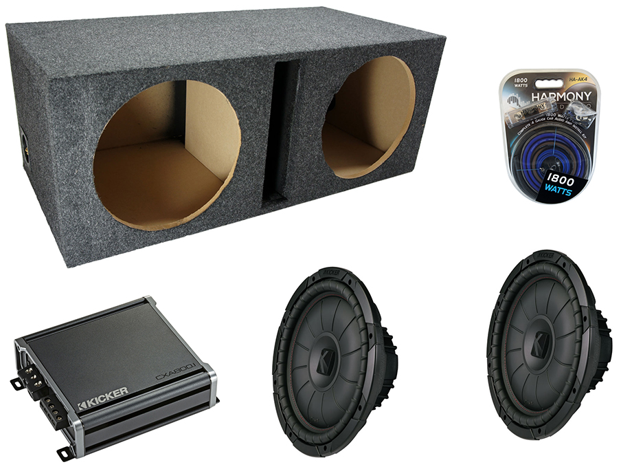 Kicker 43CVR124 12" 400W RMS 4 Ohm Sub, 46CXA8001 1600W Amp & Sub Box