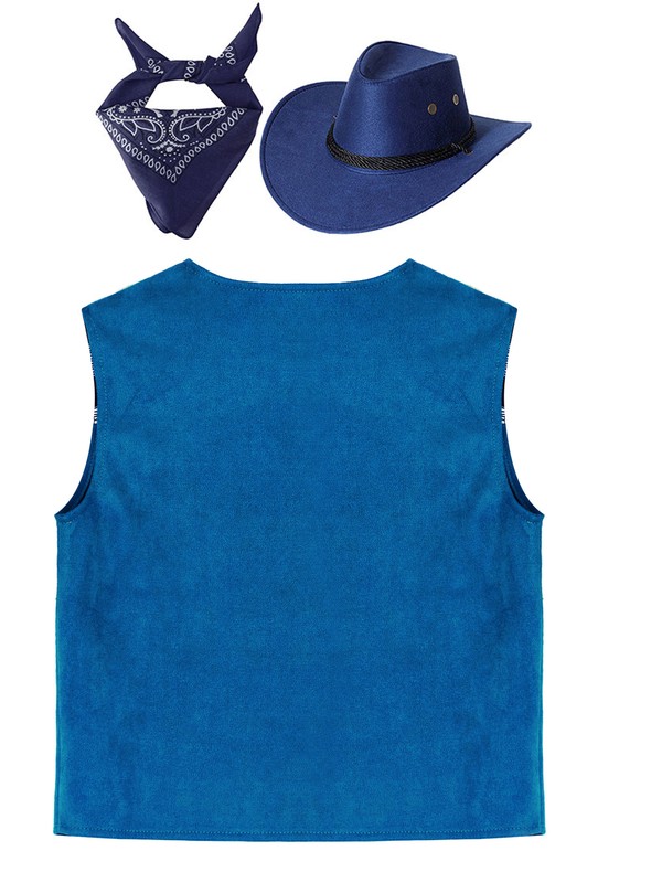 Set Include: 1Pc Kids Cowboy Vest, 1Pc Cowboy Hat, 1Pc Bandanna